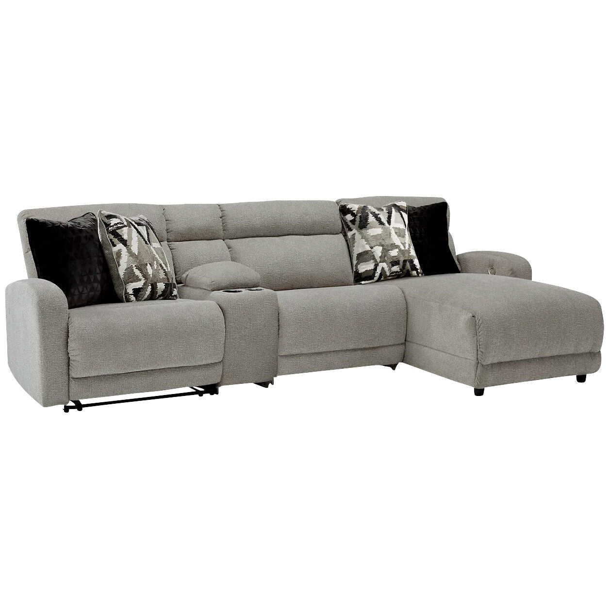 Delightfully modern. Exceptionally comfortable. When it comes to modular furniture with easy-elegant appeal, it's hard to beat this power reclining sectional. Wrapped in a decadently plush stone-tone fabric for neutral versatility, this chic sectional is dressed to impress with a clean-lined divided back, curved track arms and a low-profile back for a relaxed, contemporary aesthetic. - Product Details provided by Manufacturer, Slumberland not responsible for errors in information.