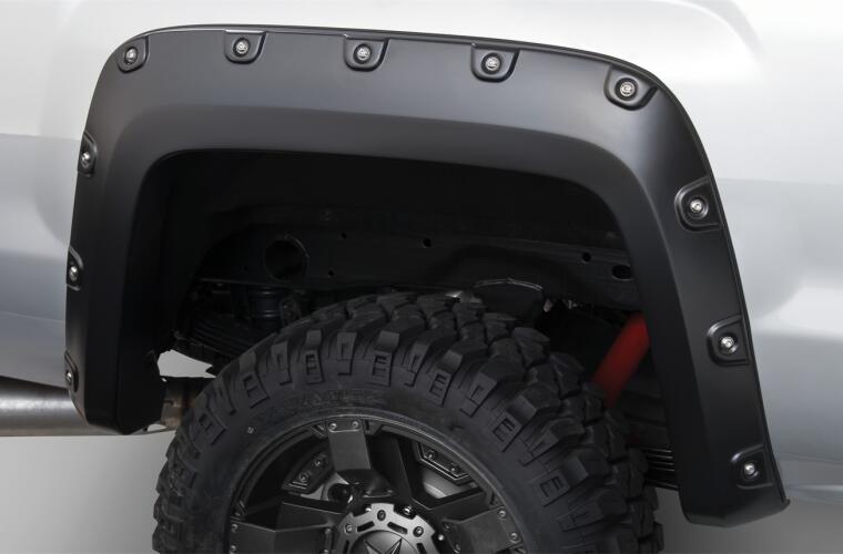 With their recessed stainless steel bolts and massive presence, Pocket Style® Fender Flares are a Bushwacker original and an off-road icon. They're custom-designed for your GMC Sierra to complement oversized tires and high-clearance lift kits. You can mount them right out of the box, with their tough, OEM-style matte black finish - they're UV protected so they won't chalk. Or, paint them to match or accent the body color, for a factory-custom look. Pocket Style® Fender Flares are made in the USA from our thick, warp-resistant Dura-Flex® 2000 material, tailor-made for added durability and flexibility on the trail. Despite their hard-core bolt-on styling, Pocket Style® Fender Flares install easily, with minimal drilling required. When you need maximum tire coverage with minimum time and effort, it's in the pocket. Pocket Style® Fender Flares from Bushwacker.