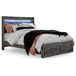 Rest in the beachy style and practicality of this queen panel storage bed. Its driftwood and surfer-inspired smoky finish gives this bed a rustic look that's perfect for creating an island escape in the room. Two under bed storage drawers provide ample room for stowing away spare bedding and more. Clean lines and modern charm blend for an authentic look to be enjoyed for years to come. Included slats eliminate need for foundation/box spring. Mattress sold separately. - Product Details provided by Manufacturer, Slumberland not responsible for errors in information.