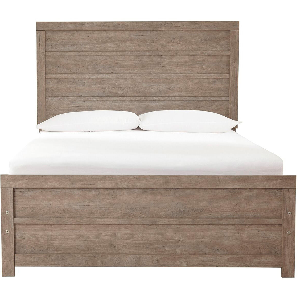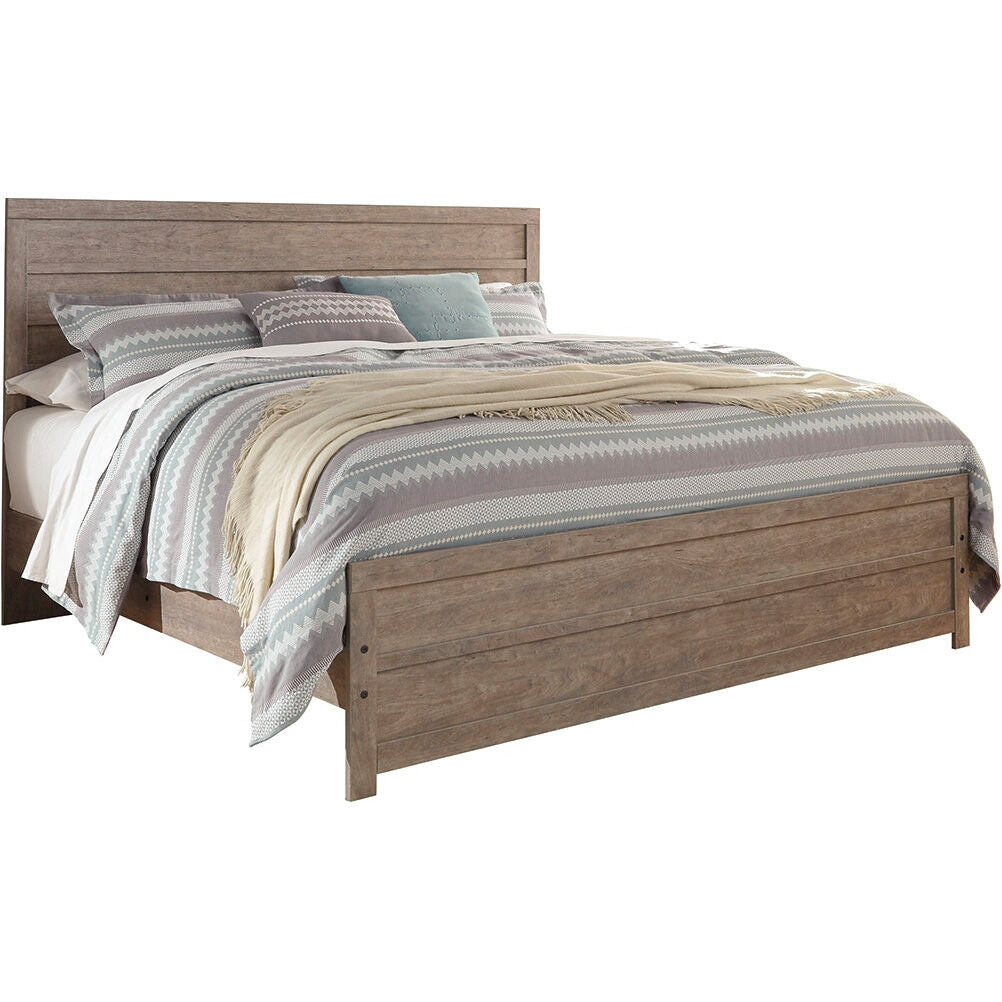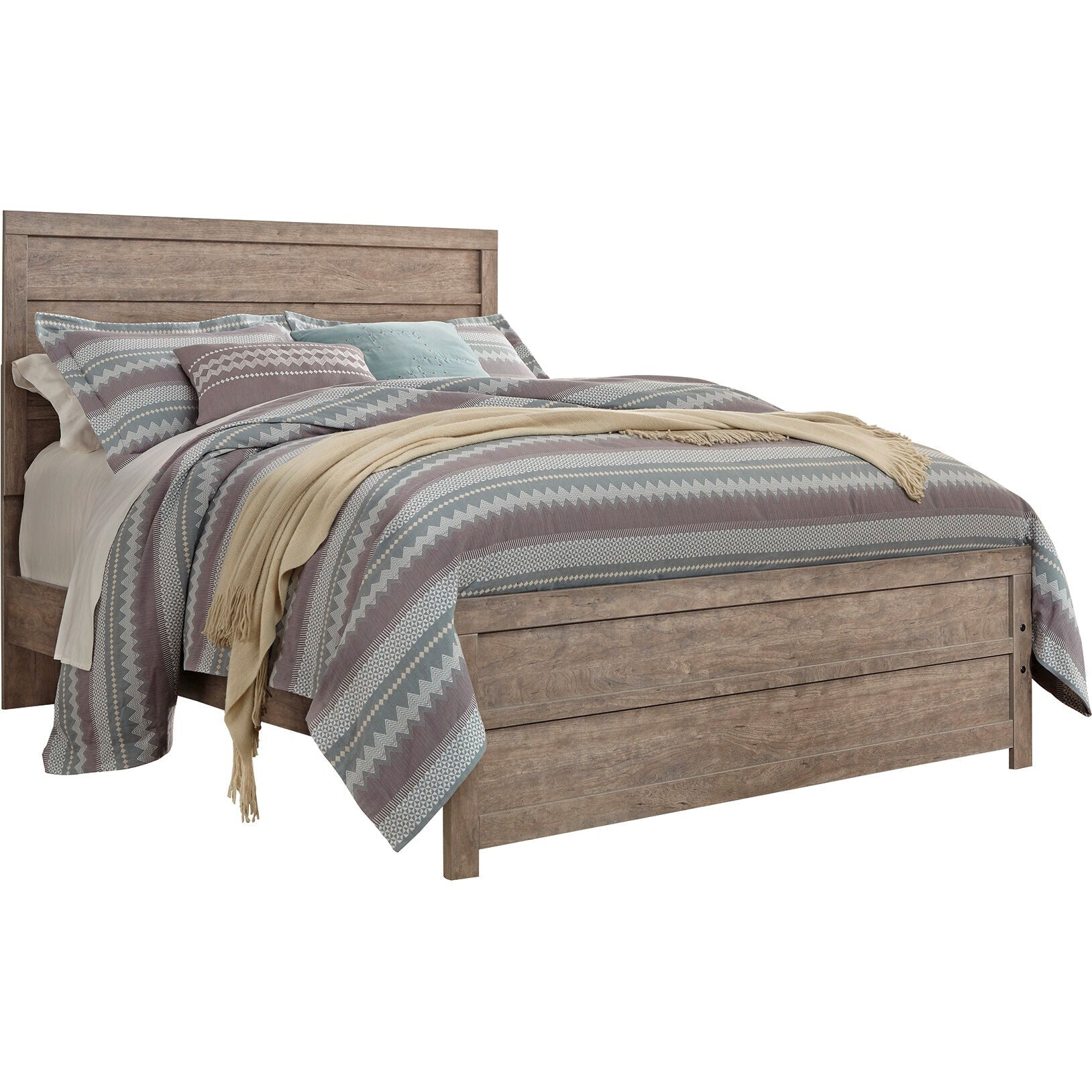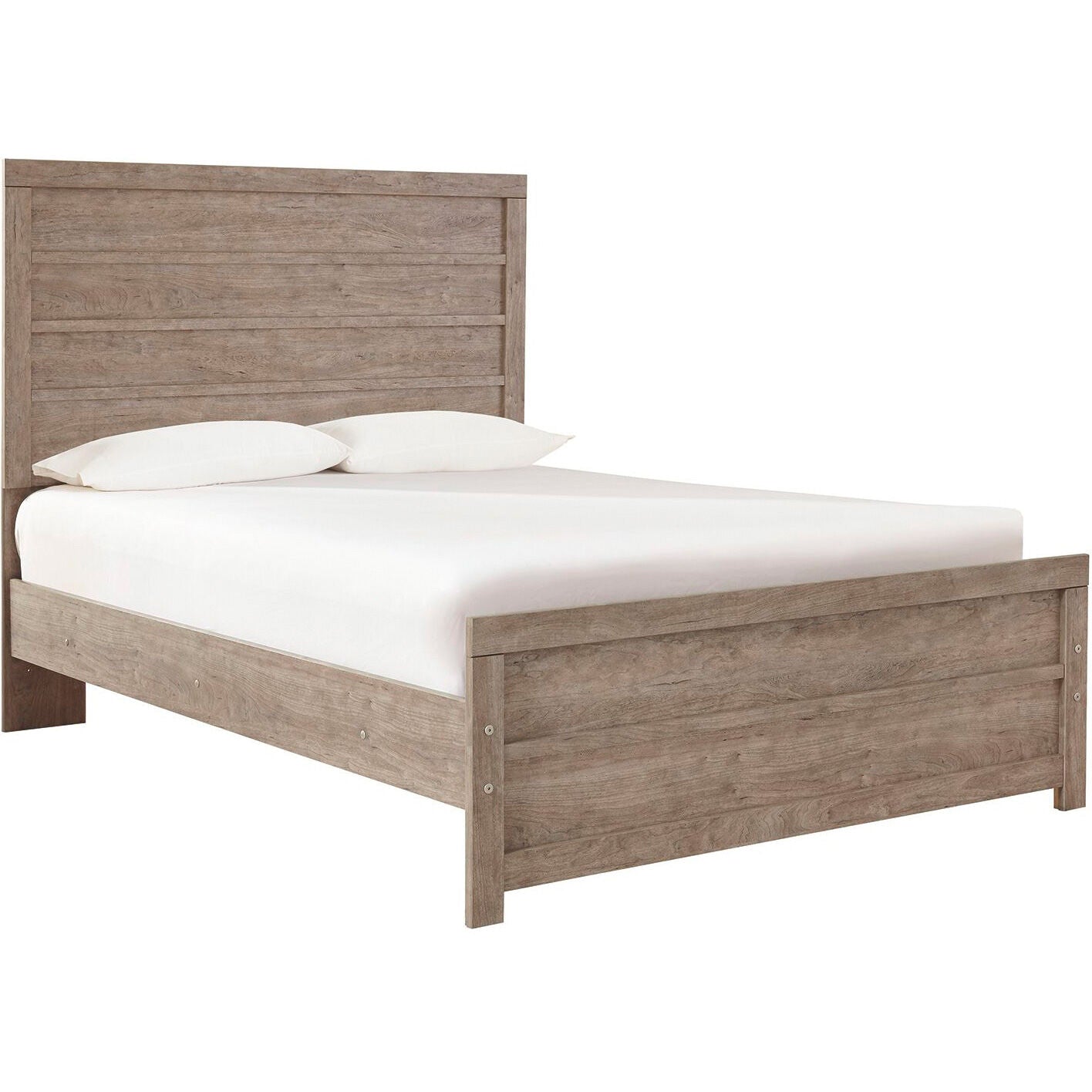 The Culverbach Driftwood Panel Bed in Queen or King Bed Size features a natural and vintage driftwood finish with moldings across headboard that give the piece a thick-planked look. With a subtle pearl effect over replicated cherry grain, this bed is both raw and refined, homespun and pure. Whether you're looking to add a touch of the great outdoors to your sleeping space or guest bedroom, or want to match a rustic or nautical theme, this bed frame is both and stylish. Sure to last for many years to come, it's an ageless piece that fits into many transitional spaces. Mouldings across headboard give a carefully thought out vibe to the gray vintage finish. The thick panel headboards are reminiscent of driftwood that's been lost at sea, yet carefully restored to style a serene bedroom suite. The wood grain is a favorite among those looking for minimal customer care, as the decorative laminate maintains a perfect condition well beyond the point of purchase.