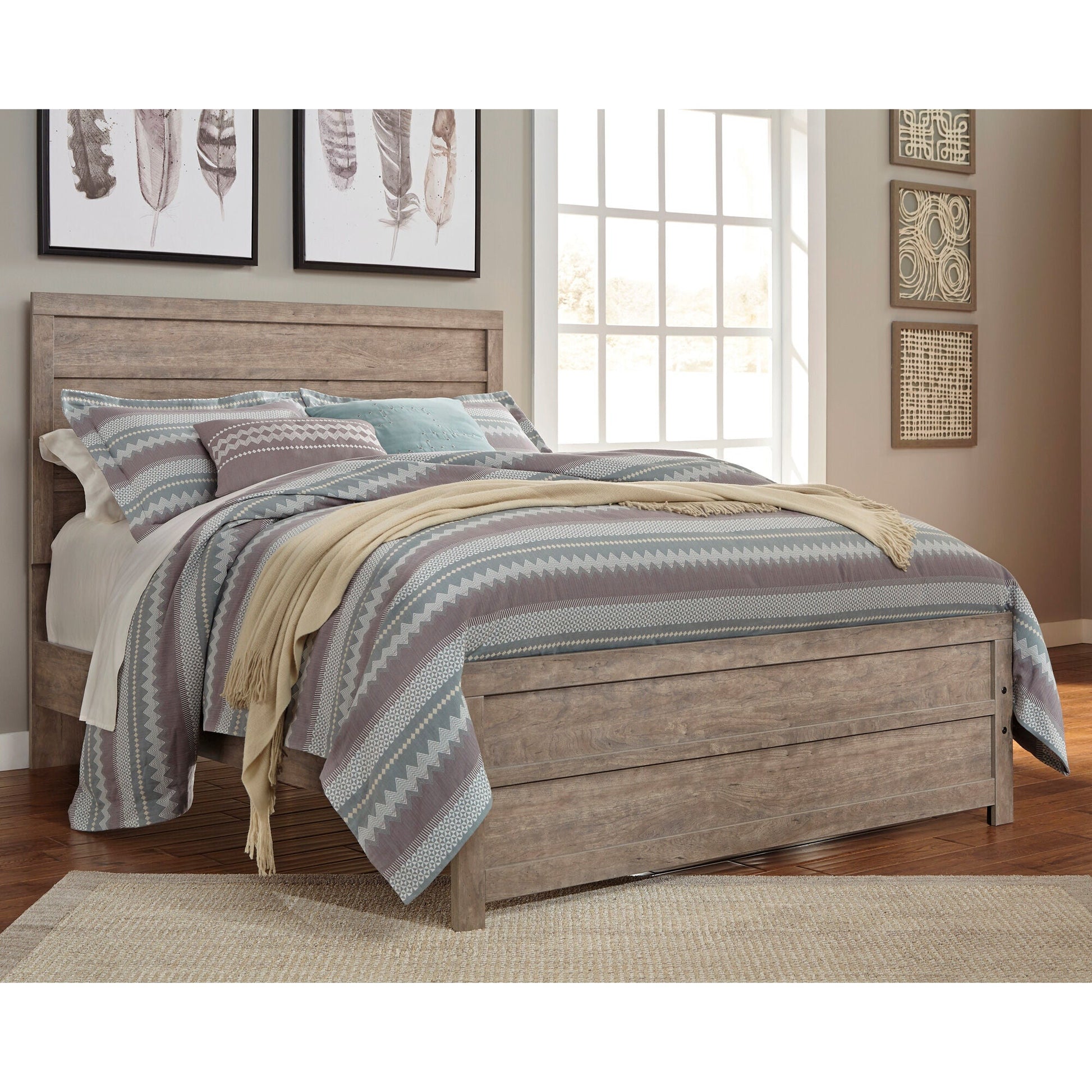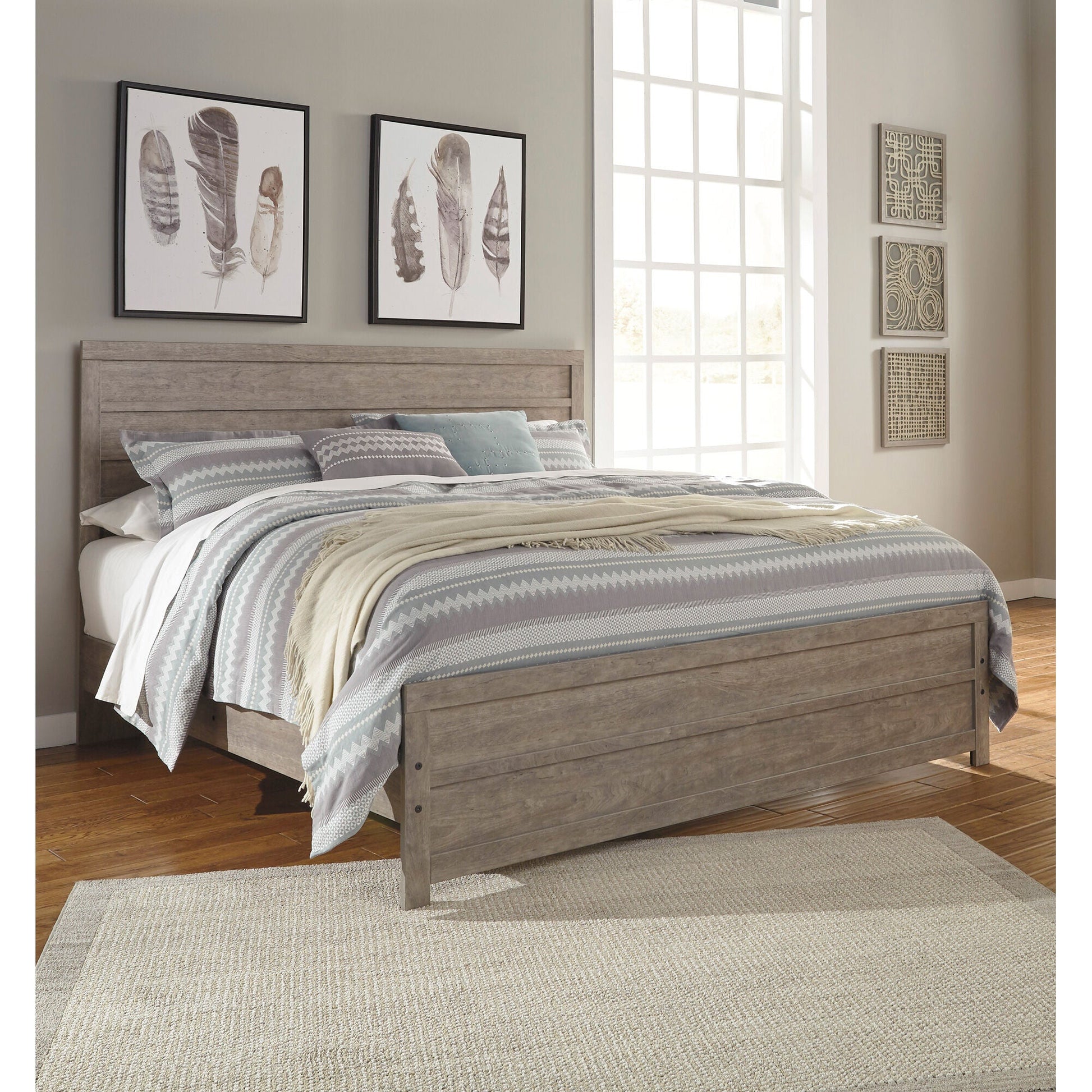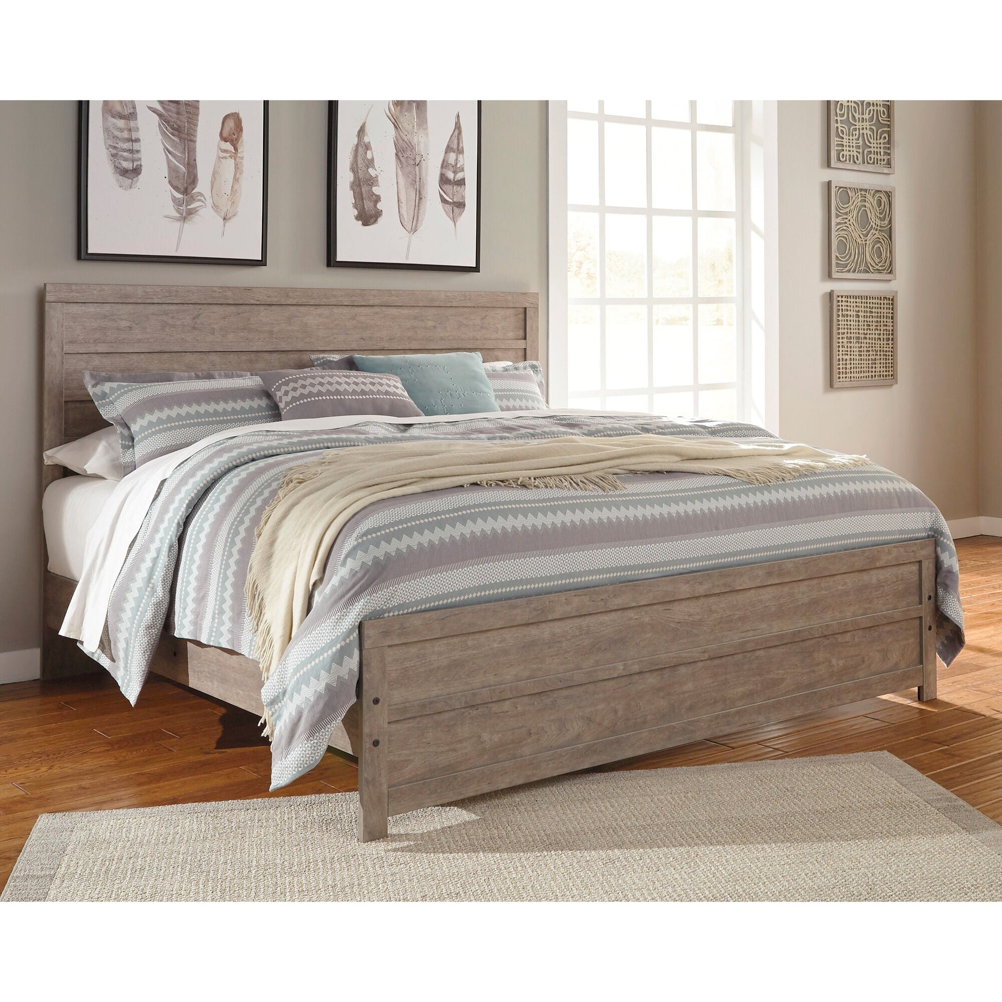 The Culverbach Driftwood Panel Bed in Queen or King Bed Size features a natural and vintage driftwood finish with moldings across headboard that give the piece a thick-planked look. With a subtle pearl effect over replicated cherry grain, this bed is both raw and refined, homespun and pure. Whether you're looking to add a touch of the great outdoors to your sleeping space or guest bedroom, or want to match a rustic or nautical theme, this bed frame is both and stylish. Sure to last for many years to come, it's an ageless piece that fits into many transitional spaces. Mouldings across headboard give a carefully thought out vibe to the gray vintage finish. The thick panel headboards are reminiscent of driftwood that's been lost at sea, yet carefully restored to style a serene bedroom suite. The wood grain is a favorite among those looking for minimal customer care, as the decorative laminate maintains a perfect condition well beyond the point of purchase.