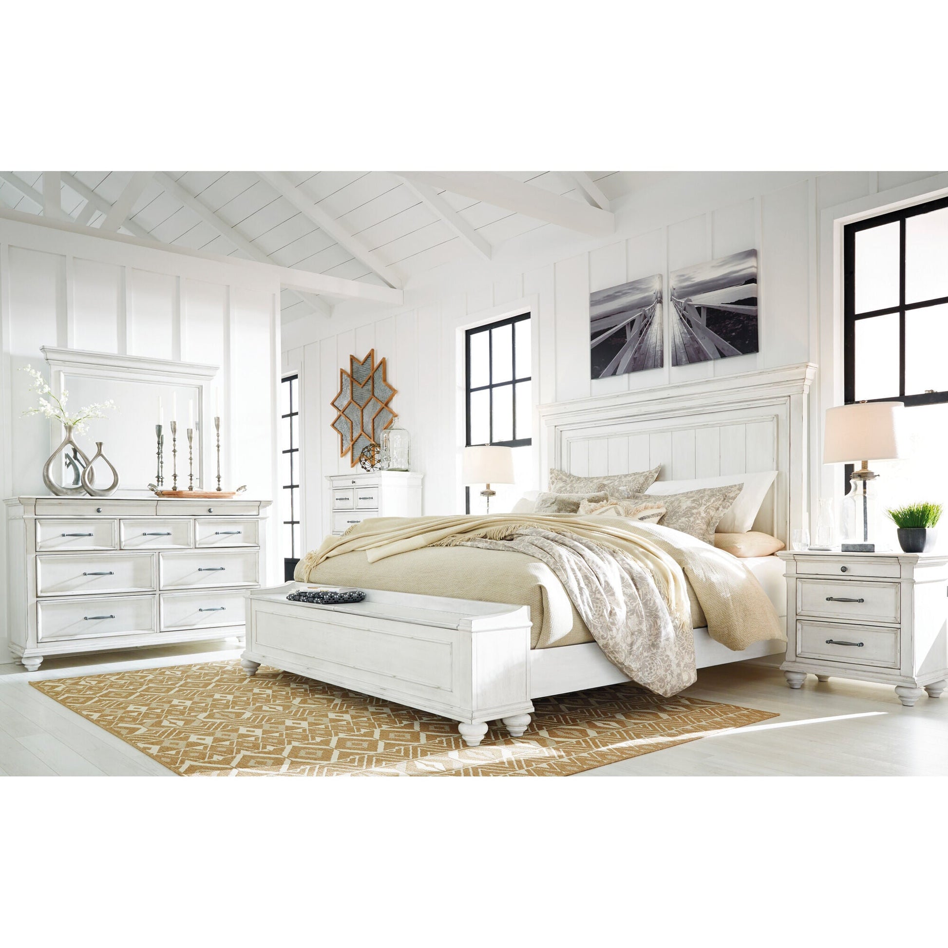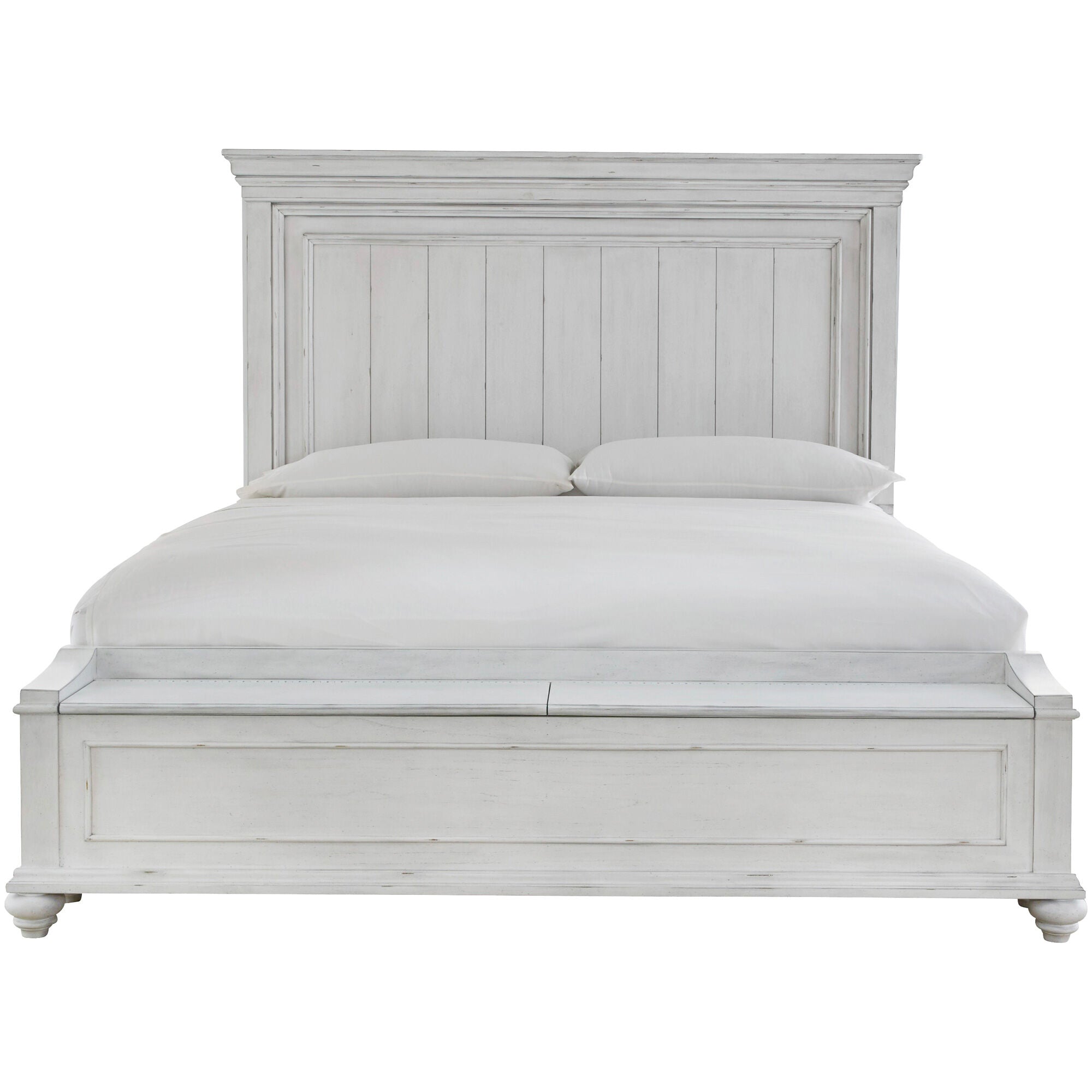 Give your retreat vintage charm with this queen panel bed and storage footboard. In a beautifully distressed white-washed finish, you'll love the headboard's grand style featuring a picture framed panel. The bench footboard is equally elegant offering extra storage and a convenient seat. Generously scaled moulding from top to bottom, along with bun feet give this bed character—invoking the feel of a quaint cottage escape. - Product Details provided by Manufacturer, Slumberland not responsible for errors in information.