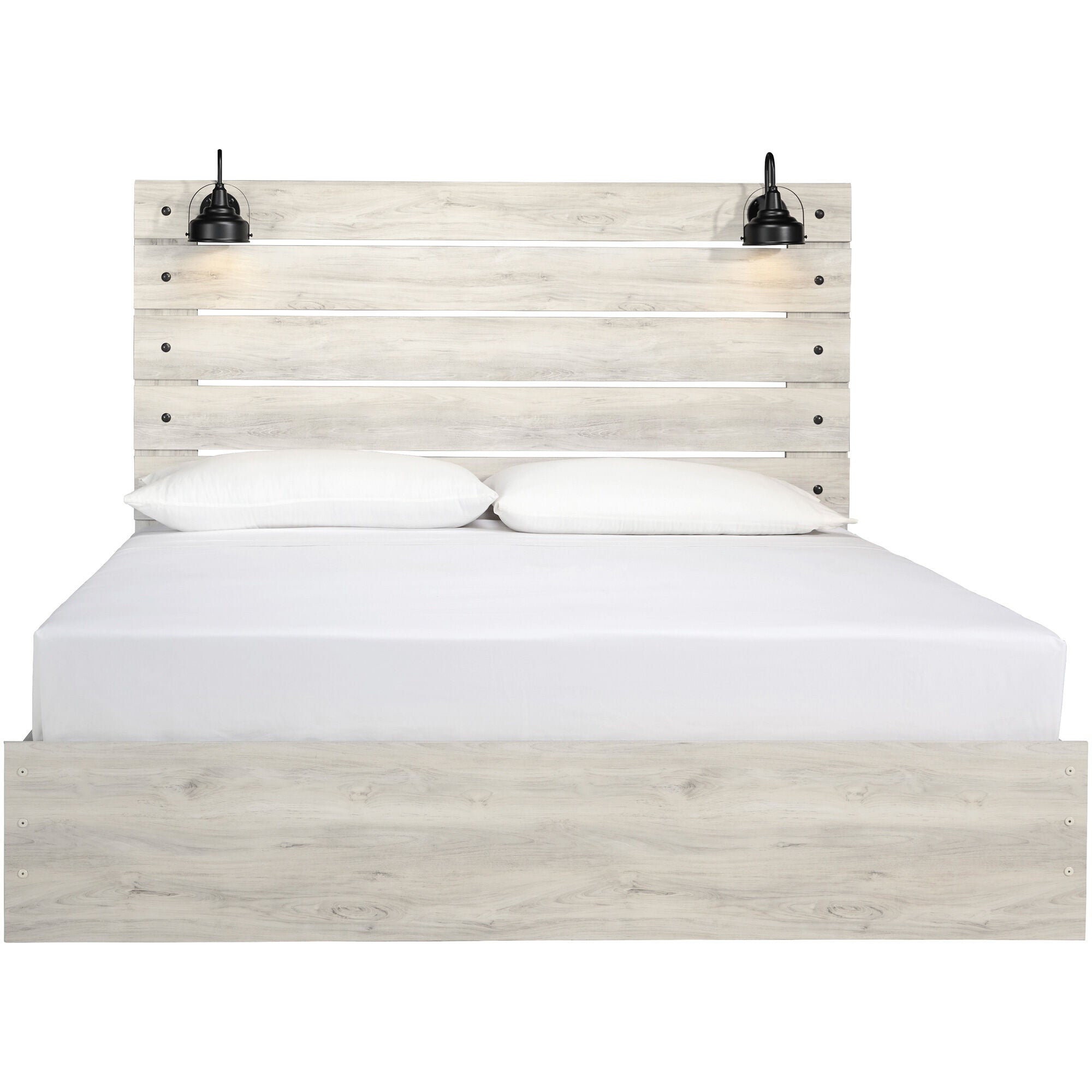 What a delightful take on rustic industrial style. Whether modern loft or modern farmhouse, this queen panel bed makes itself at home. The wispy whitewash palette enhances without covering the grain for that weathered look you crave. Love to read in bed? You're sure to find the retro-chic light sconces and USB plug-ins on the open-slat style headboard such a bright idea. - Product Details provided by Manufacturer, Slumberland not responsible for errors in information.