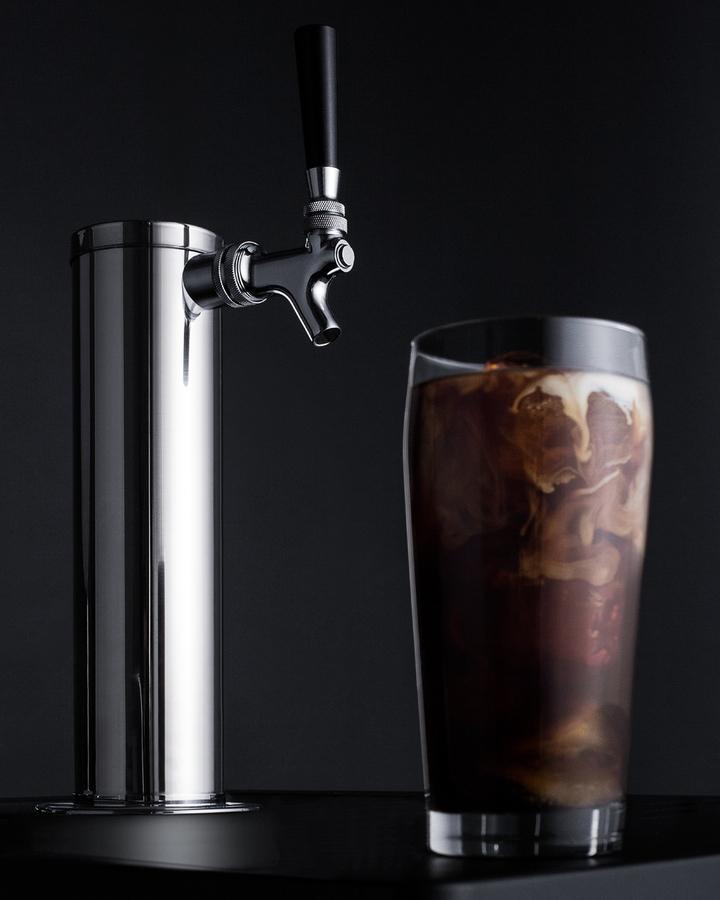 Summit Commercial offers quality lineup of cold brew coffee dispensers designed to serve smooth drafts in indoor or outdoor commercial applications. The SBC695OSCF is a full-sized weatherproof kegerator designed to serve cold brew coffee. It is ETL-S listed to NSF-7 standards and meets UL-471 for commercial applications. The cabinet and door are wrapped in 304 grade stainless steel, with a sealed back designed to protect all electrical components from the elements. This unit features a front-breathing system that allows built-in installation under counters, as well as a fully finished exterior for optional freestanding use. A caster set is included for optional mobility, along with a durable top rail guard. The user-reversible stainless steel door is self-closing to ensure your kegs aren't accidentally exposed to warmer temperature, with an audible alarm that warns if the door is left open for over one minute. This unit includes a stainless steel kickplate and horizontally mounted handle in a sleek blade shape, ideal for matching many popular styles of grills and cabinetry. A factory-installed front lock offers added security. Inside, the SBC695OSCF comes with hammered aluminum walls and a stainless steel floor designed to protect the interior when loading heavy kegs. A digital thermostat lets you set the temperature with reliable precision, with a wide range between 32 and 50 F to accommodate a variety of brews. A high/low temperature alarm sounds if the unit's interior goes out of safe storage conditions. We include an NSF-listed stainless steel tap kit that includes everything you need to serve iced coffee, including a standard draft tower, regulator, and Nitrogen tank. This unit utilizes automatic defrost for low maintenance use. An interior LED light is included to help make the keg setup process more convenient. With its solid construction, user-friendly features, and attractive design, the SBC695OSCF is the perfect cold brew dispenser for indoor or outdoor commercial applications. Additional tap styles for nitro-infused coffee are available.