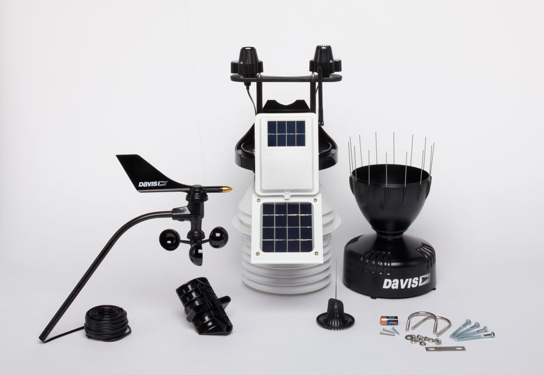 - Sensor suite includes outside temperature and humidity sensors in a passive radiation shield; wind speed and direction; rainfall; UV and solar radiation.