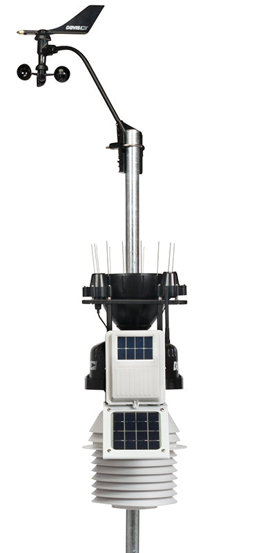 The wireless Vantage Pro2 Plus is a research-grade weather station that includes all the features of the Vantage Pro2, plus UV and solar radiation sensors. Vantage Pro2 Plus provides accurate, reliable weather monitoring with real-time data updates every 2.5 seconds. The sensor suite's outside temperature and humidity sensors are housed in a 24-hour Fan-Aspirated Radiaiton Shield for maximum accuracy. Vantage Pro2 Plus boasts an industry-leading transmission range of 1,000/300 m from the sensor suite to an optional WeatherLink Console (6313), EnviroMonitor IP Gateway (6805), or WeatherLink Live (6100).