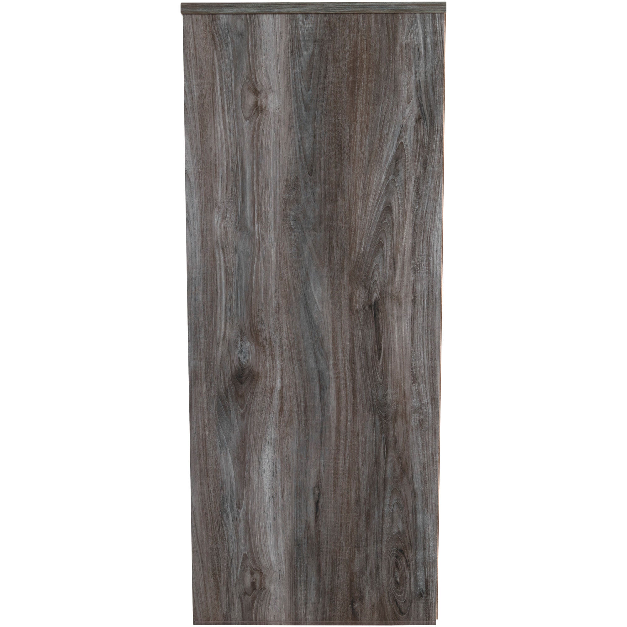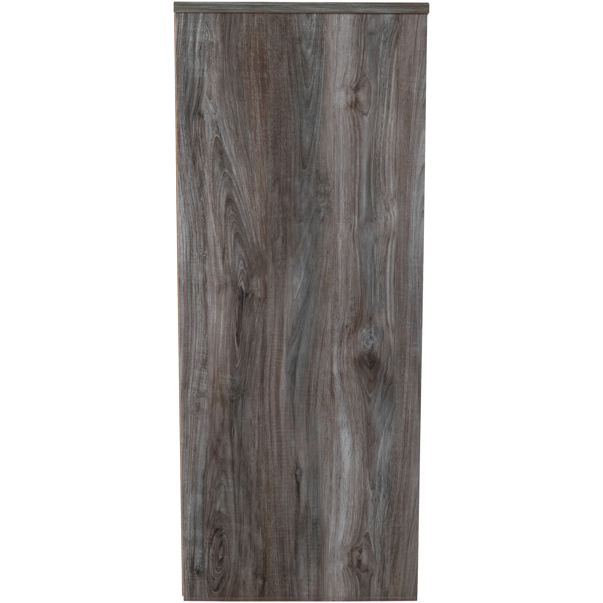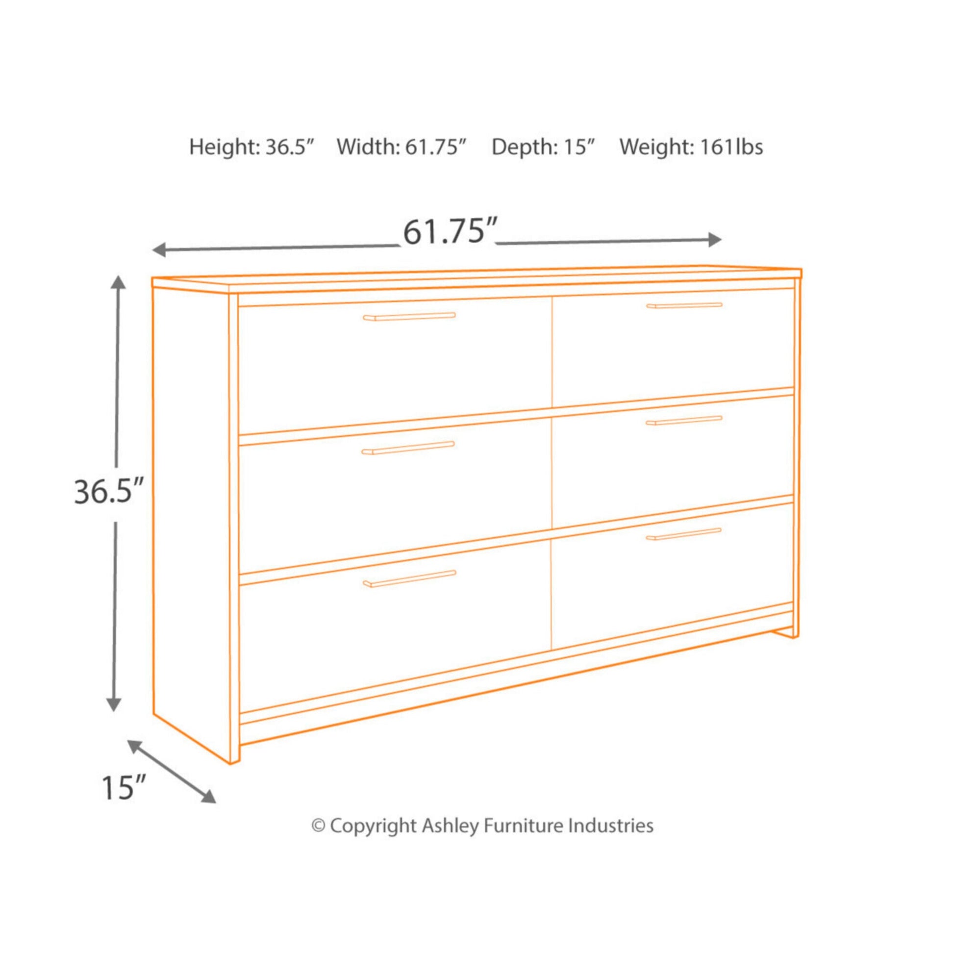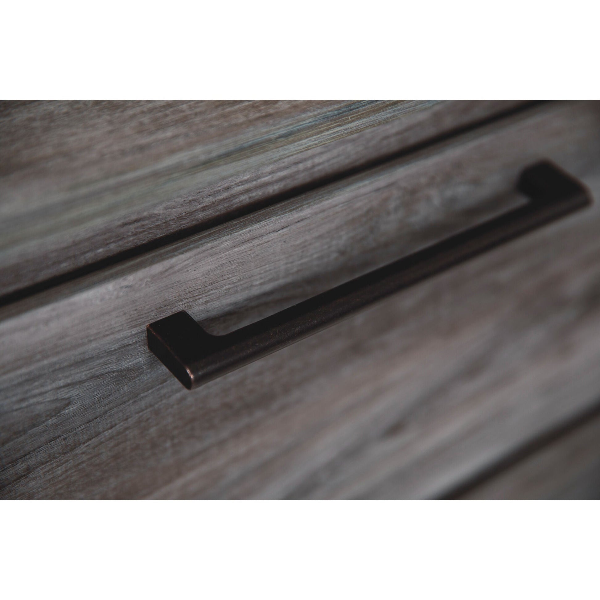 Enjoy the rustic chic of the Baystorm dresser. Its casual, driftwood-inspired look will set the tone for your modern or transitional bedroom. Made of engineered wood, it has a replicated woodgrain look and a smoky finish that's both laid-back and eye-catching. Antiqued gunmetal handles add the perfect finish. Matched with the rest of the Baystorm collection or your own pieces, this roomy, 6-drawer chest is a must for setting a relaxing tone in your bedroom.