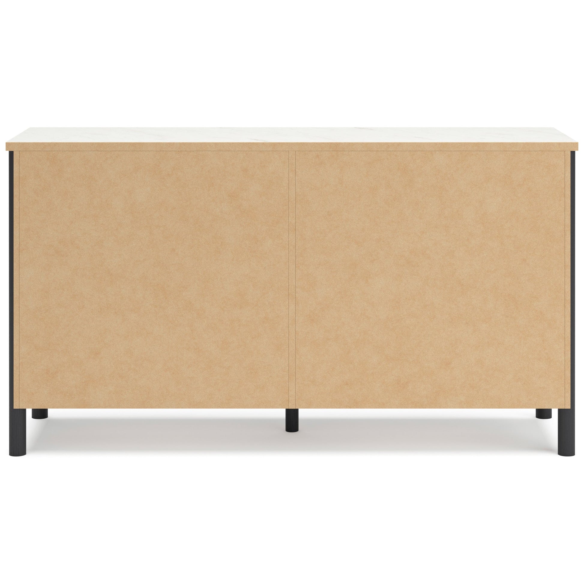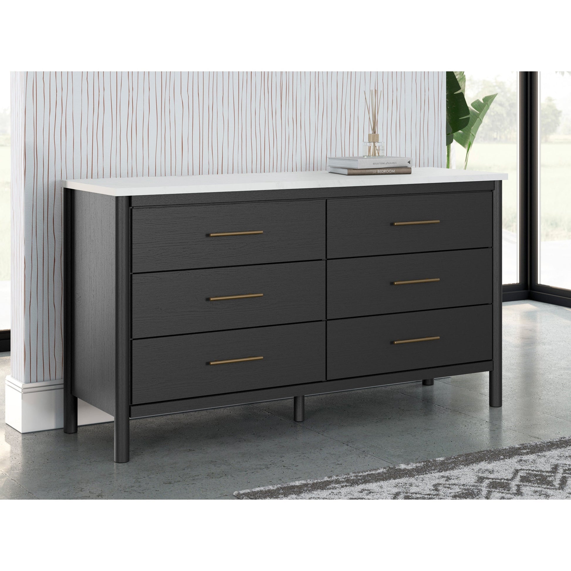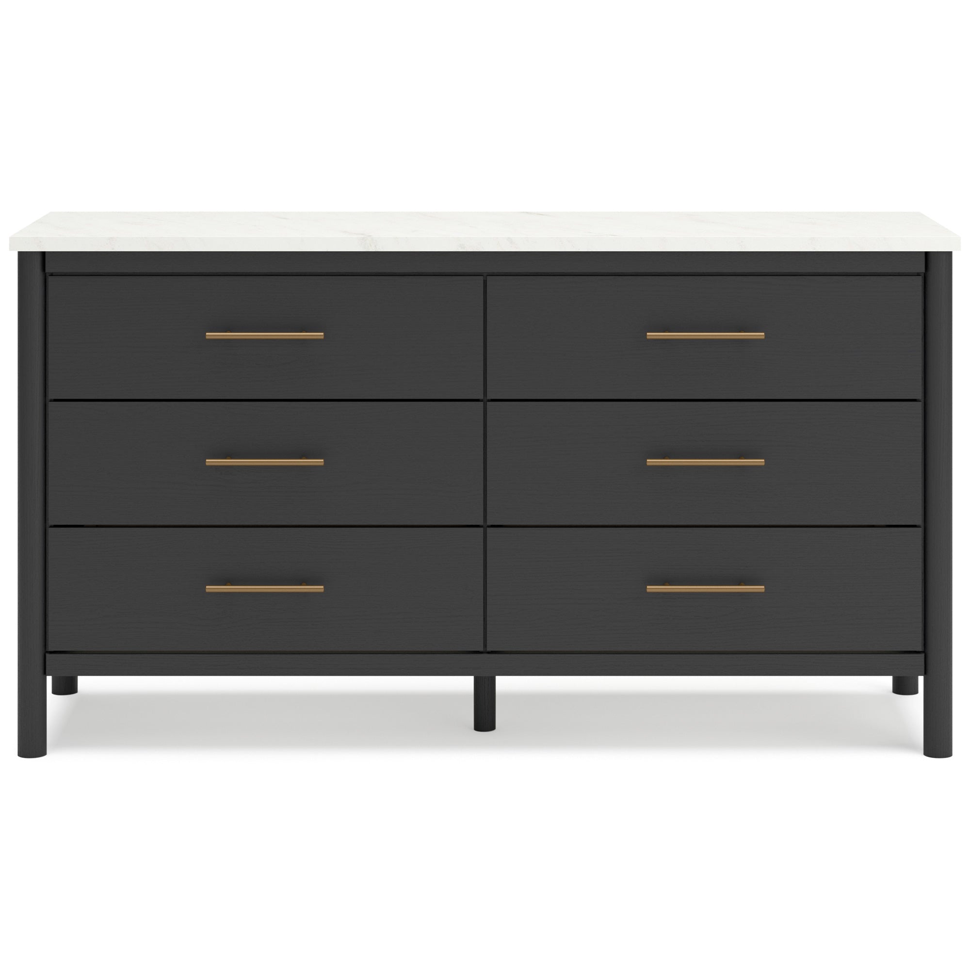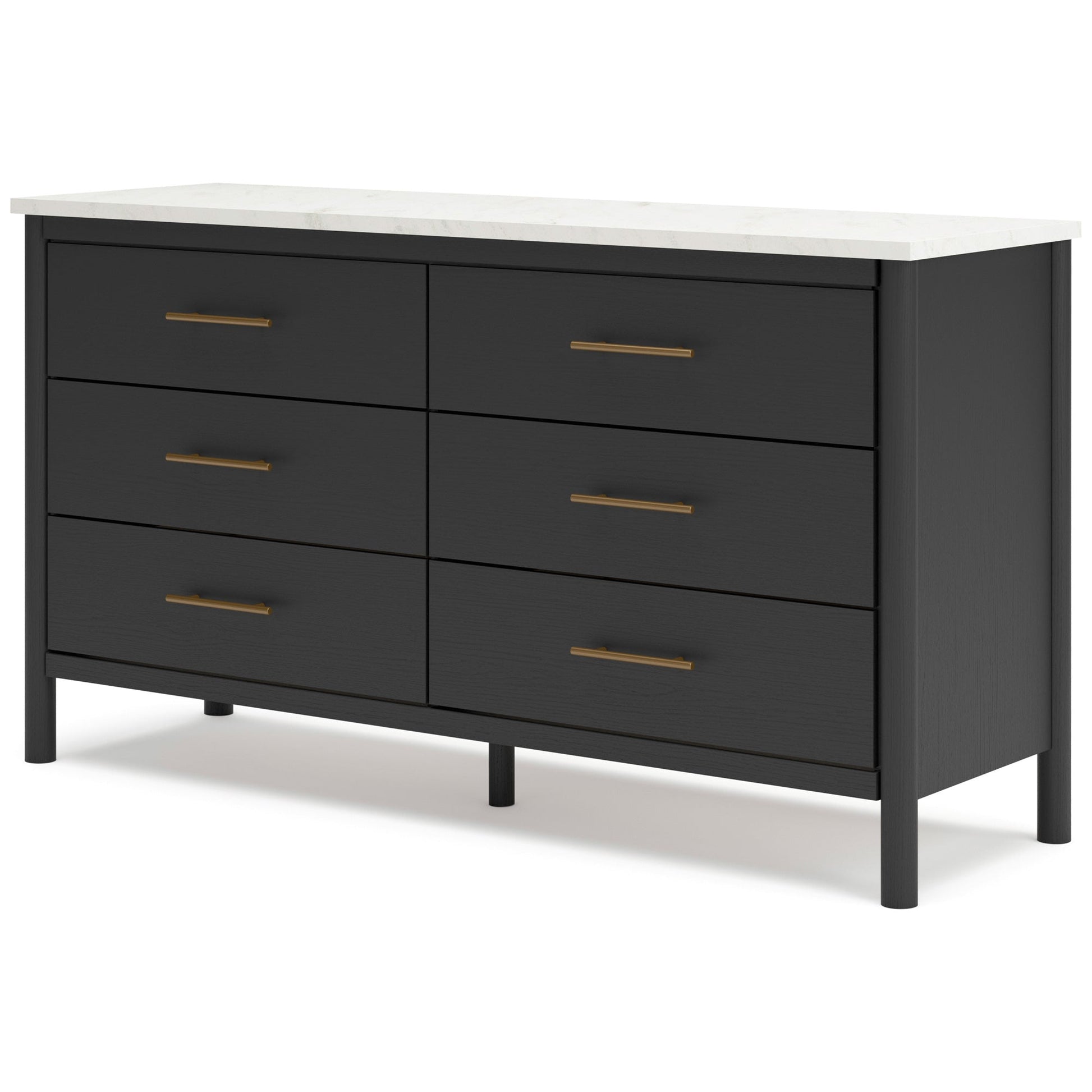 A casual contemporary design with a smooth, light finish and white marble top. 6 Drawers feature smooth side roller glides and champagne colored finished handles. - Product Details provided by Manufacturer, Slumberland not responsible for errors in information.