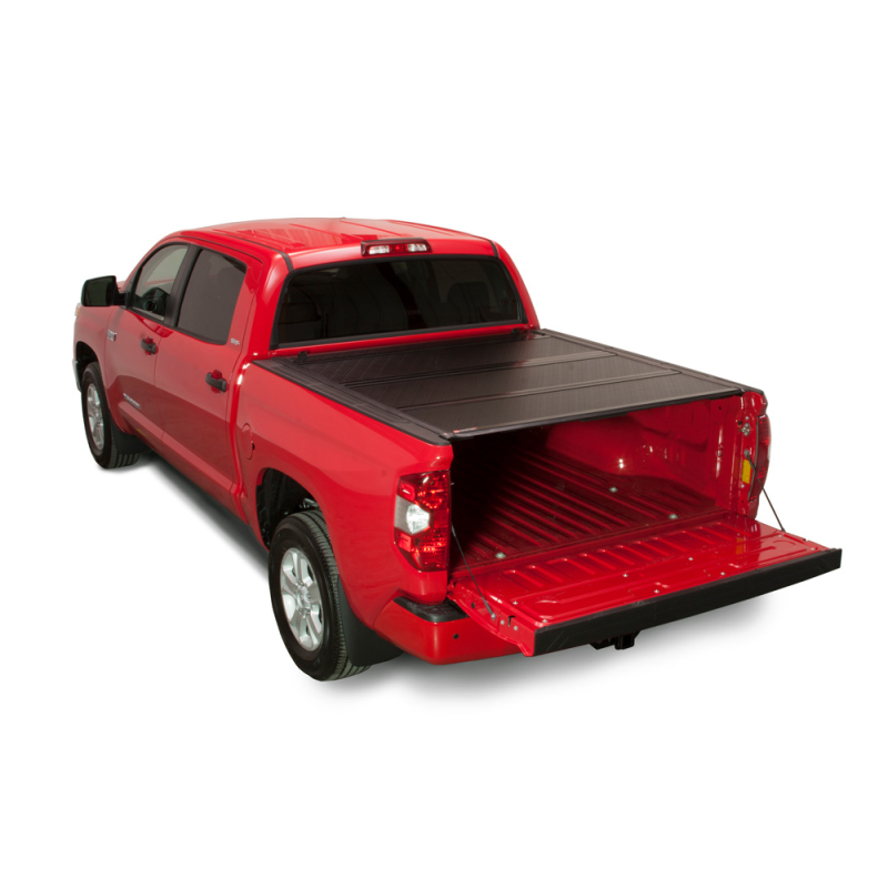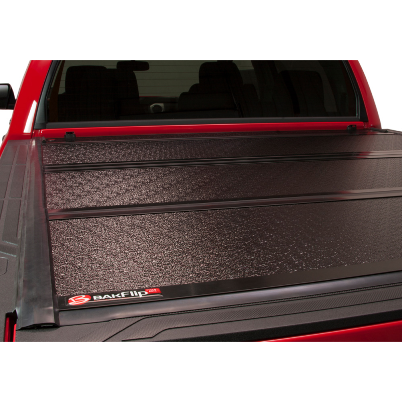 The BAKFlip FiberMax is an aluminum hard folding truck bed cover with an FRP (Fiberglass Reinforced Polymer) surface, making the cover dent, scuff and ding resistant, as well as cooler to the touch. Its tough aluminum substructure, robust hinge design and patented slam latch system make the FiberMax an easy-to-use, dependable cover that is built to last.