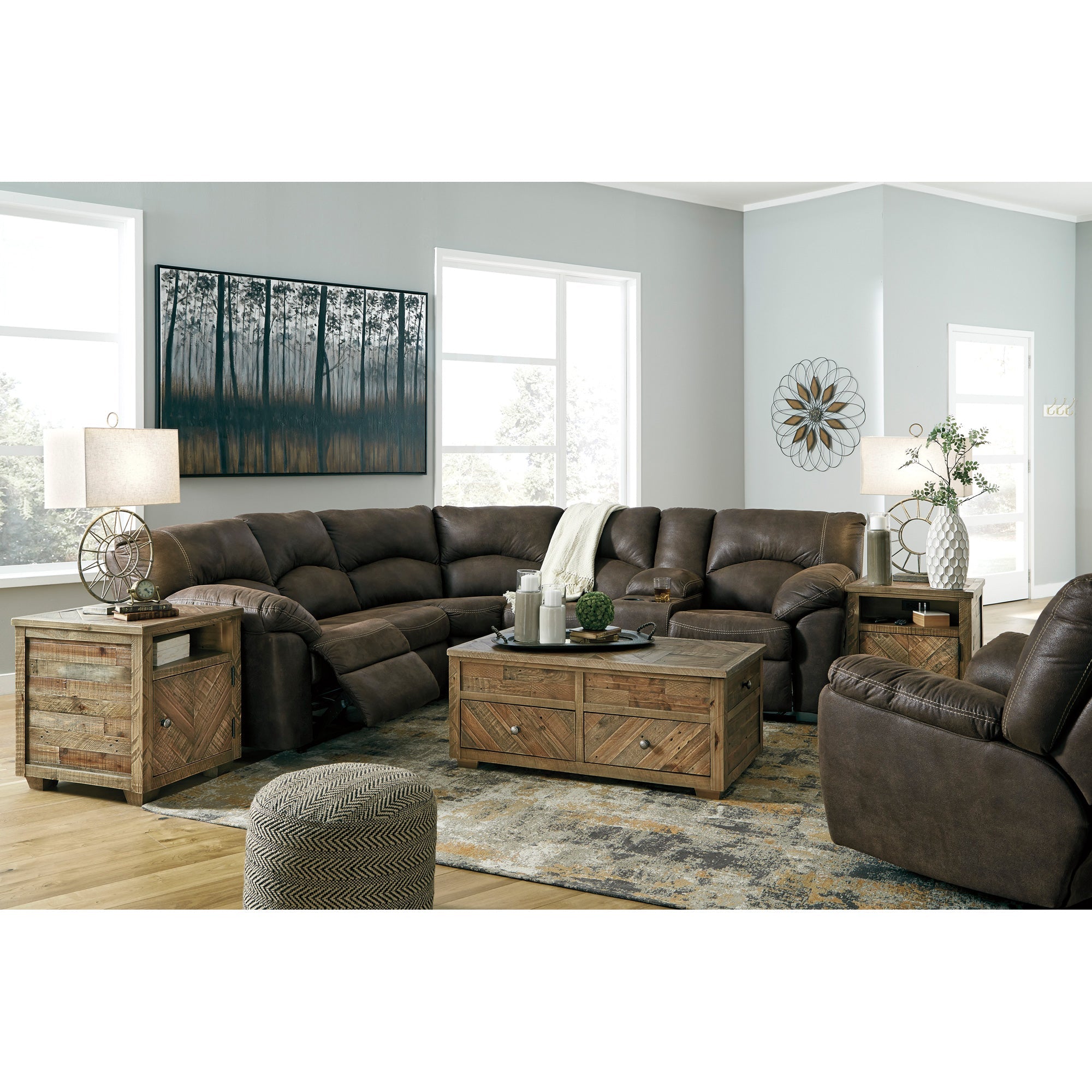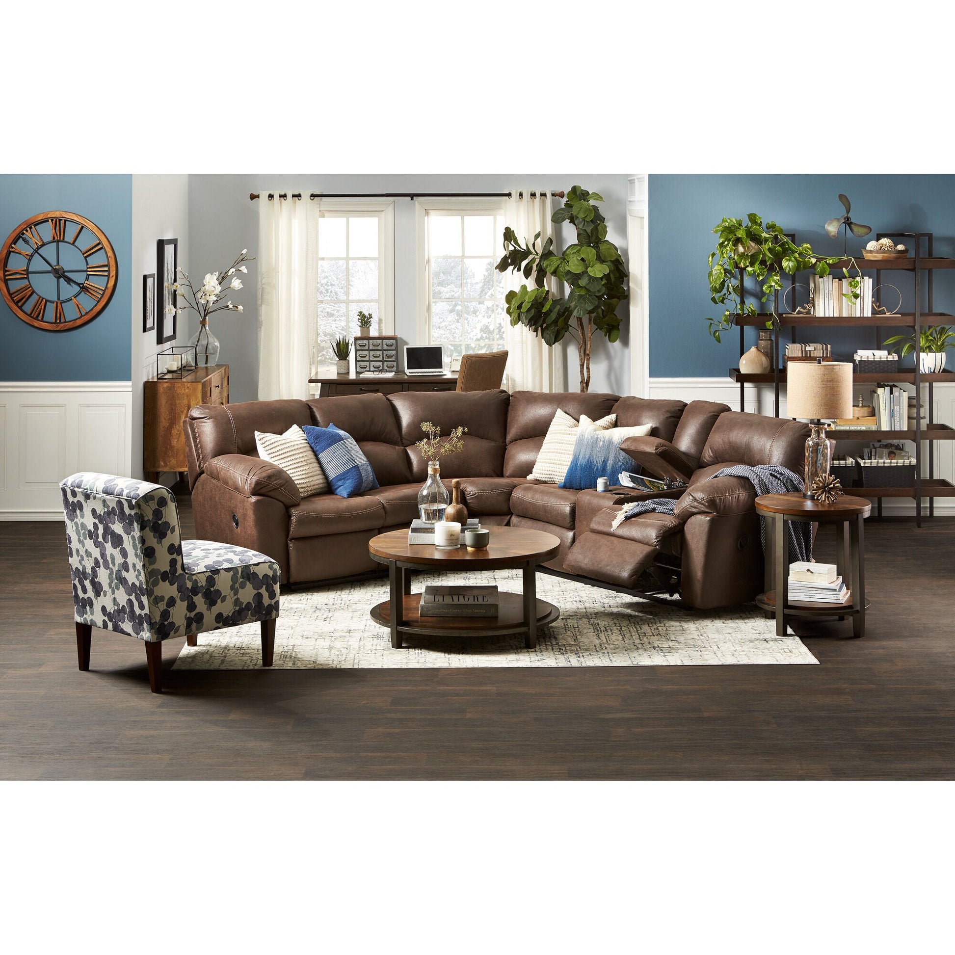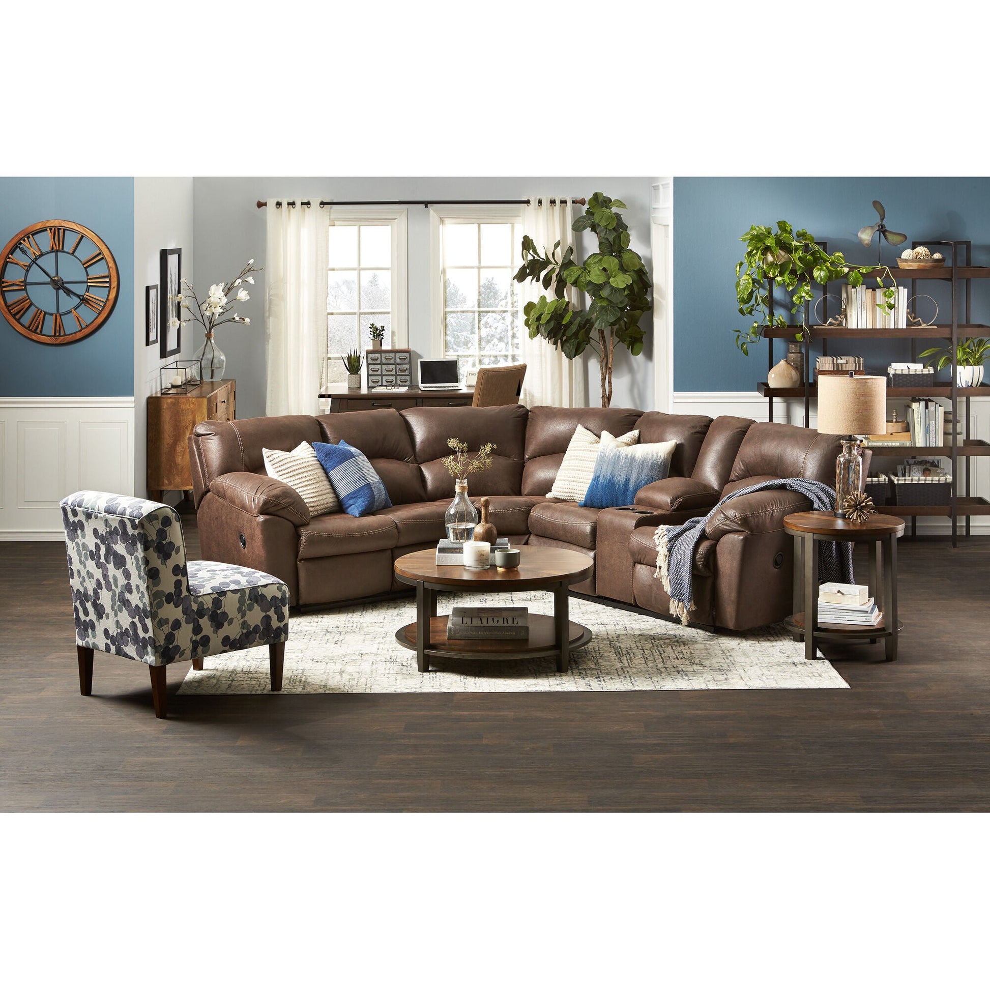 The Grover 2 piece reclining sectional captures the look of vintage leather—rugged yet so inviting. Perfect for families, this easy-care furniture is upholstered in polyester/polyurethane material, lavishly padded, and sturdily built, with an interlocking frame that's blocked, stapled, and glued, plus a metal reinforced seating area. Dual recliners feature infinite recline settings so you can customize your comfort zone, and a built-in console is a great place to stash all those remotes! Seat and back cushions are made of high-resiliency foam with low-melt poly fiber wrap.