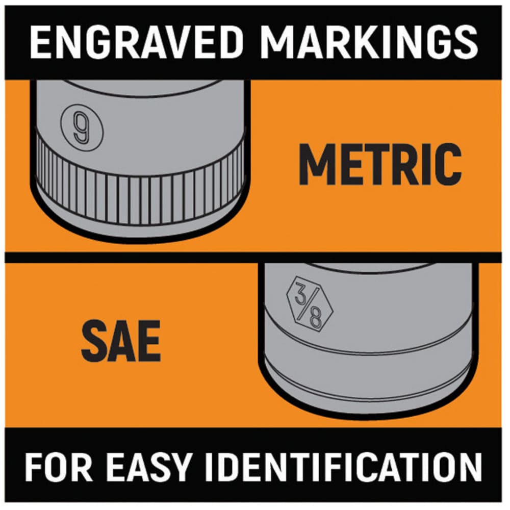 GEARWRENCH mechanics tools have all been designed with the professional user in mind to increase productivity, access, and strength. The ratchets and sockets are made from premium alloy steel and feature a full polish chrome finish that resists rust and corrosion. Large, hard-stamped markings allow for easy identification and can be easily recognized as SAE (double line) or metric (knurled line). Additionally, the off-corner loading design puts force on the flats of fasteners for improved durability and reduced fastener rounding.
