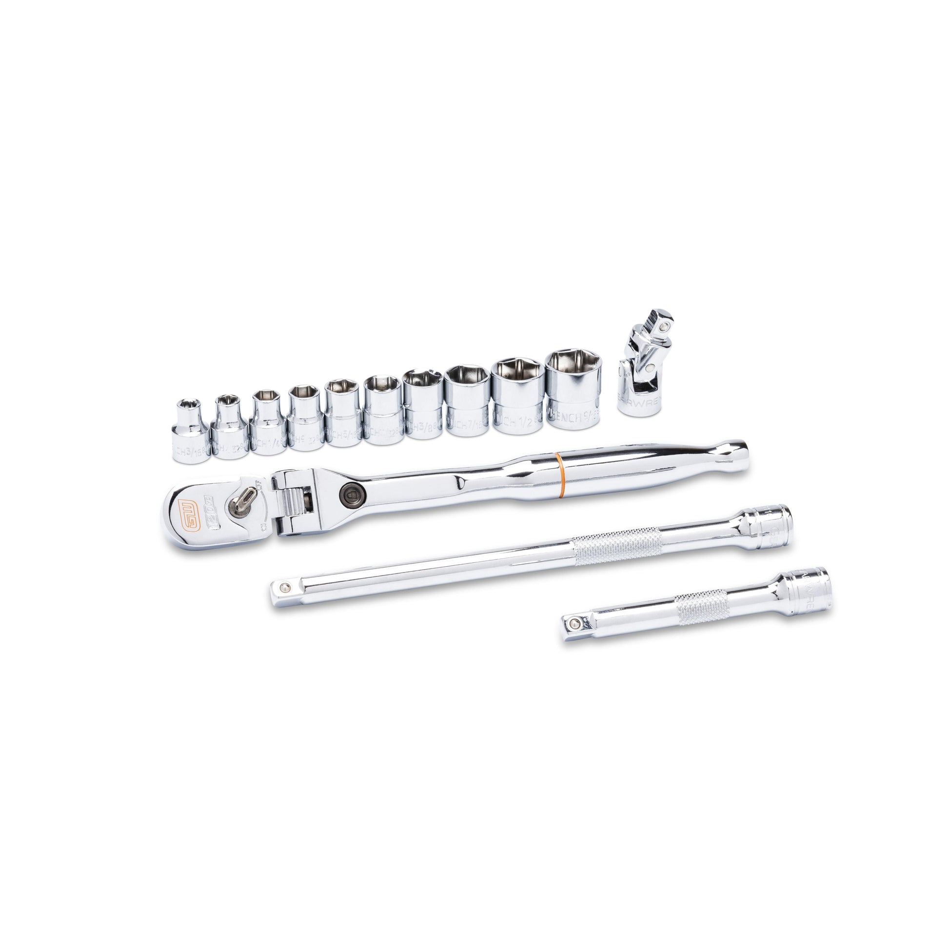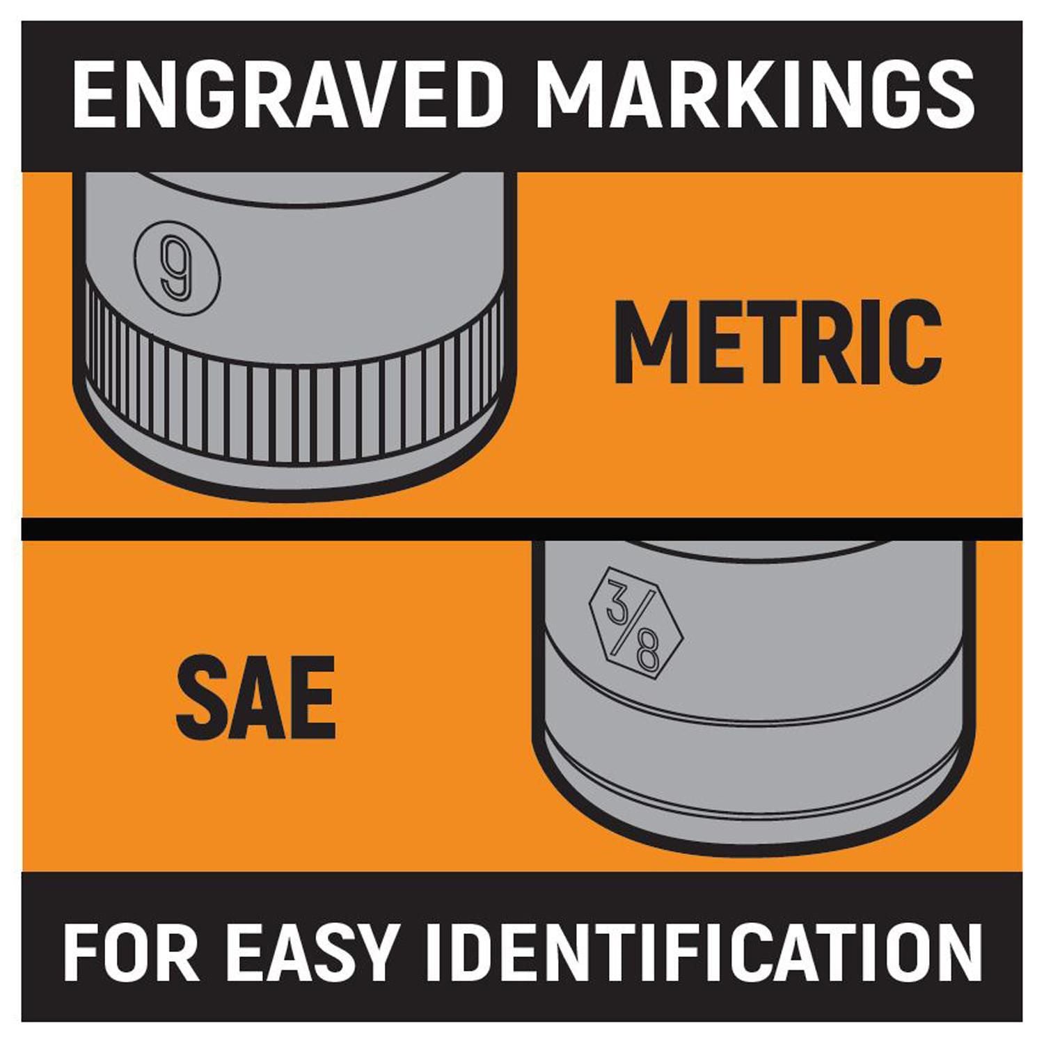 - Sockets packed on a durable socket rail providing secure storage for sockets