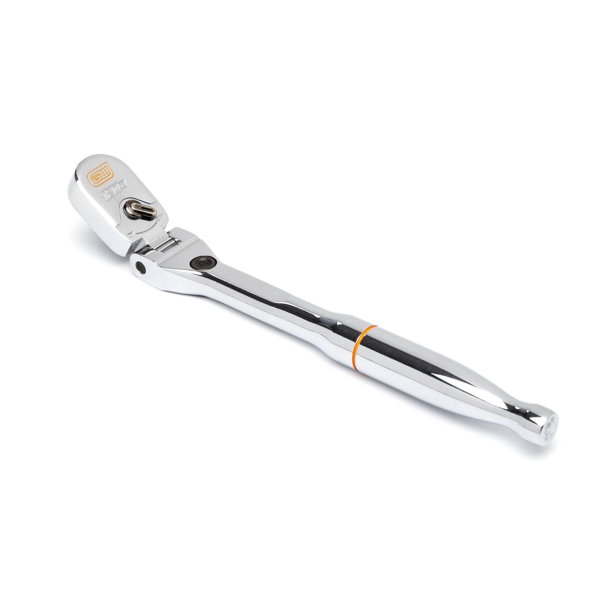 GearWrench 120XP™ Locking Flex Head Ratchet & Stubby Socket Mechanics Tool Sets offer the ultimate best-access ratchet and socket system for professional users. When combined, the overall height of the socket and ratchet is up to 50% thinner than standard ratchet systems, allowing angled access with the flex head of the ratchet to reach more hard-to-reach fasteners.