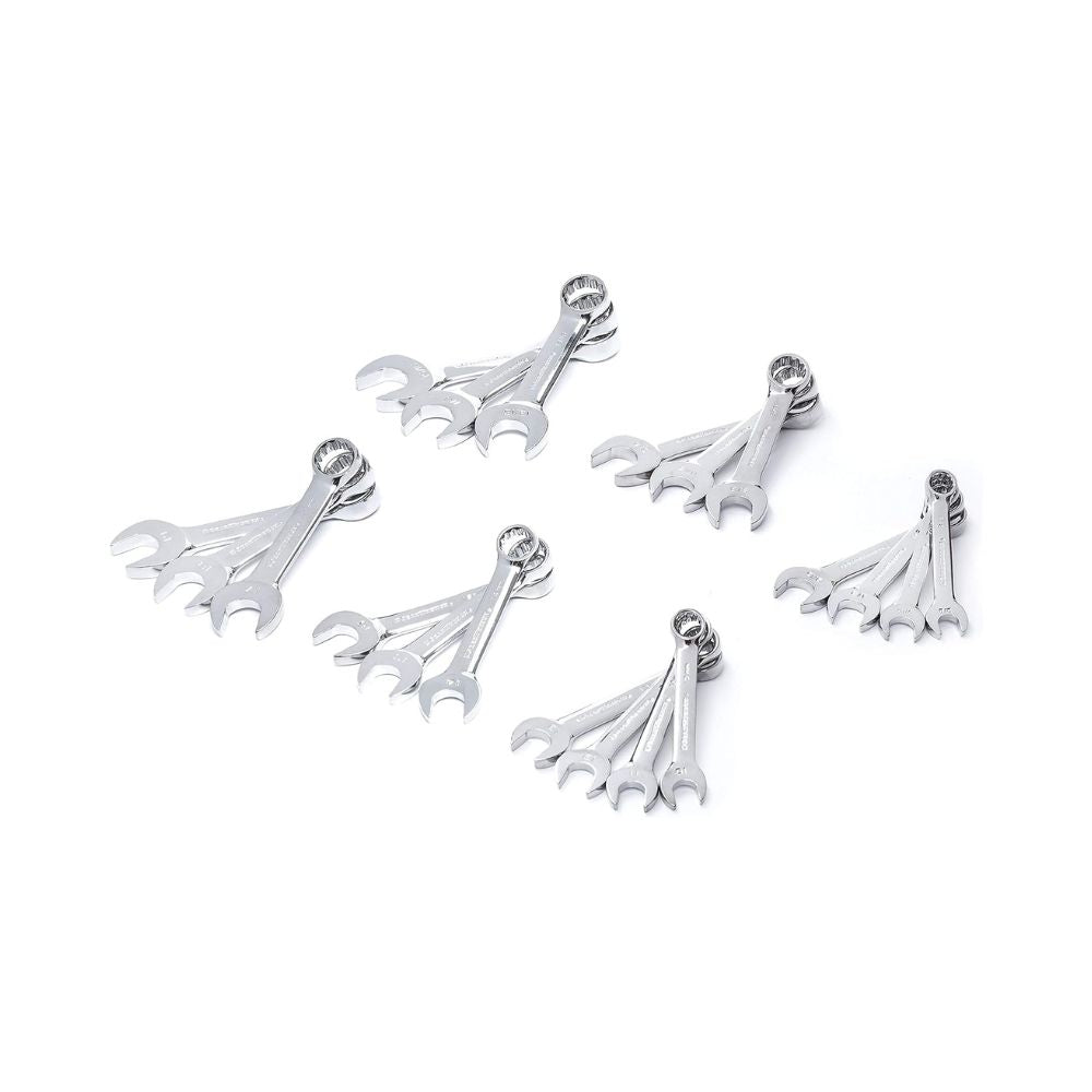 - Contains 12 point full polish long pattern combination wrenches SAE and metric
