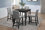 The Adina Collection’s transitional style makes it a perfect fit for your casual dining space. A black finish is utilized over the ash veneer of the counter height leg table.