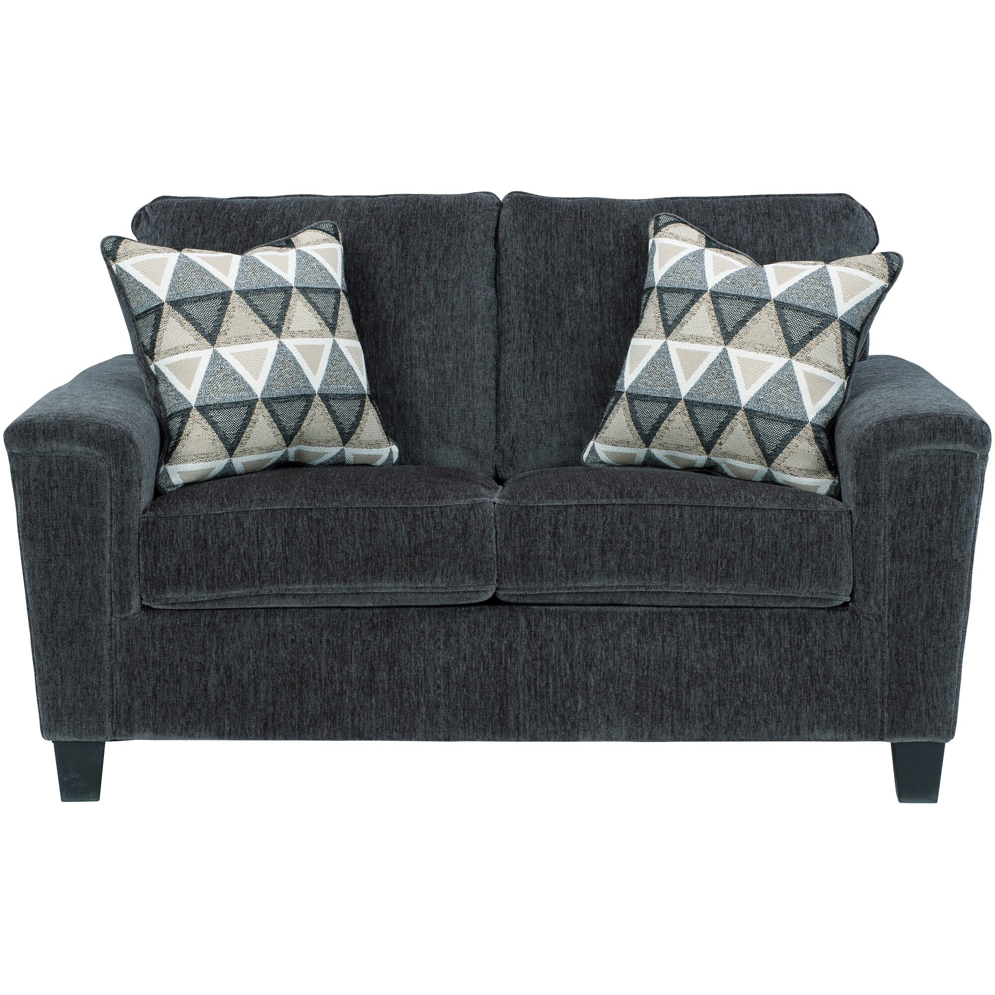 Lighten the mood with the Abinger loveseat. It's versatile in style and color, so you can pair it with lots of contemporary or transitional furnishings. This is the must-have loveseat for those who want an upscale look that's both comfortable and affordable. Covered in plush chenille upholstery, it's styled with angled side profiling and gently padded track armrests, and comes with its own throw pillows. Abinger features a platform foundation system that resists sagging 3 times better than spring systems, plus a corner-blocked frame and high-resiliency foam cushions wrapped in thick poly fiber. Dark faux wood feet add a nice contrast.
