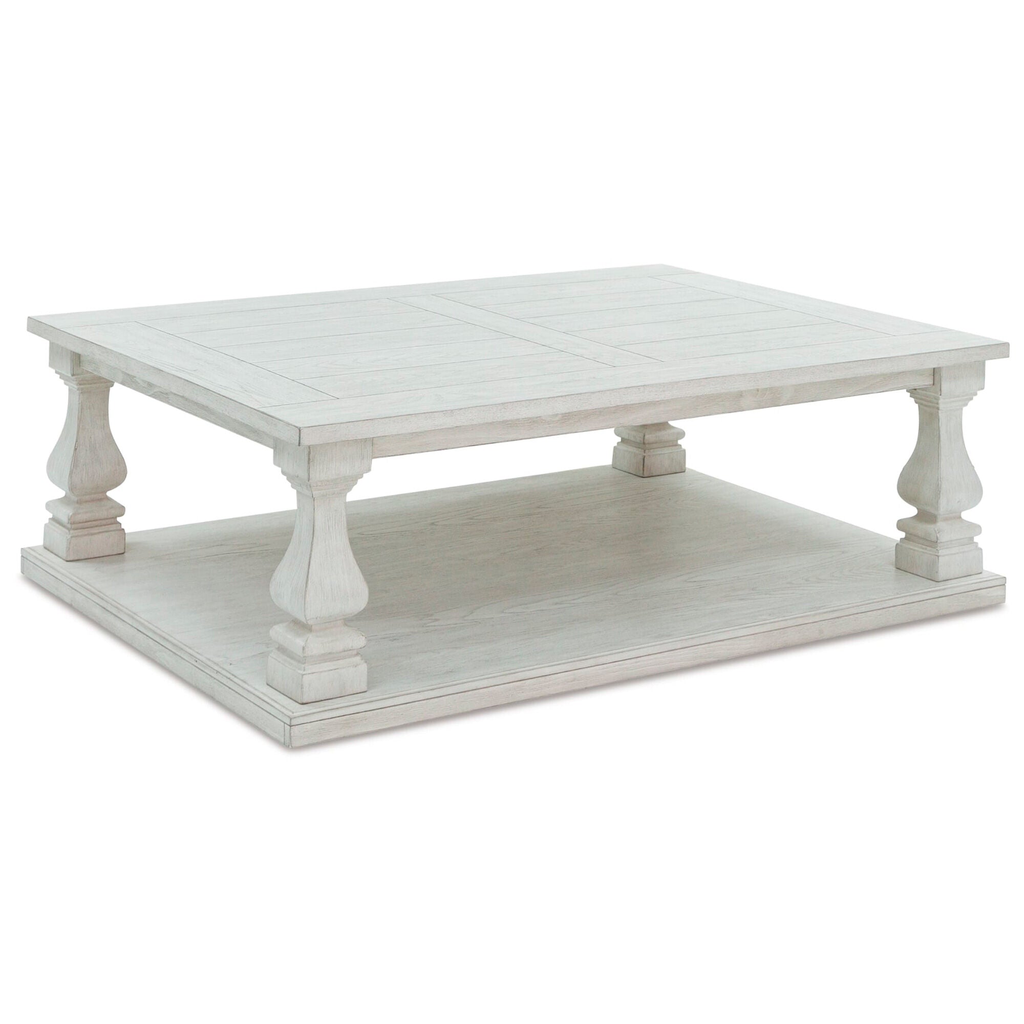 Elevating the art of casual traditional styling, this coffee table is your heavenly home accent realized. Oversized and indulgent, this beautiful piece wows with a wide plank design and square-shaped baluster legs, leaving you absorbed in its charisma.