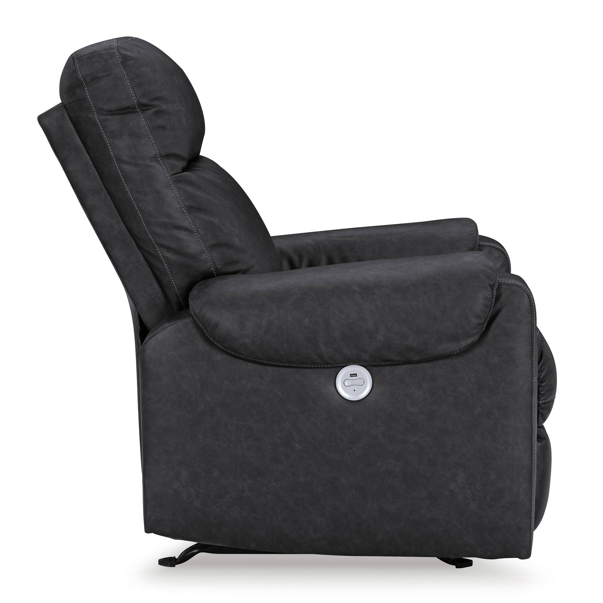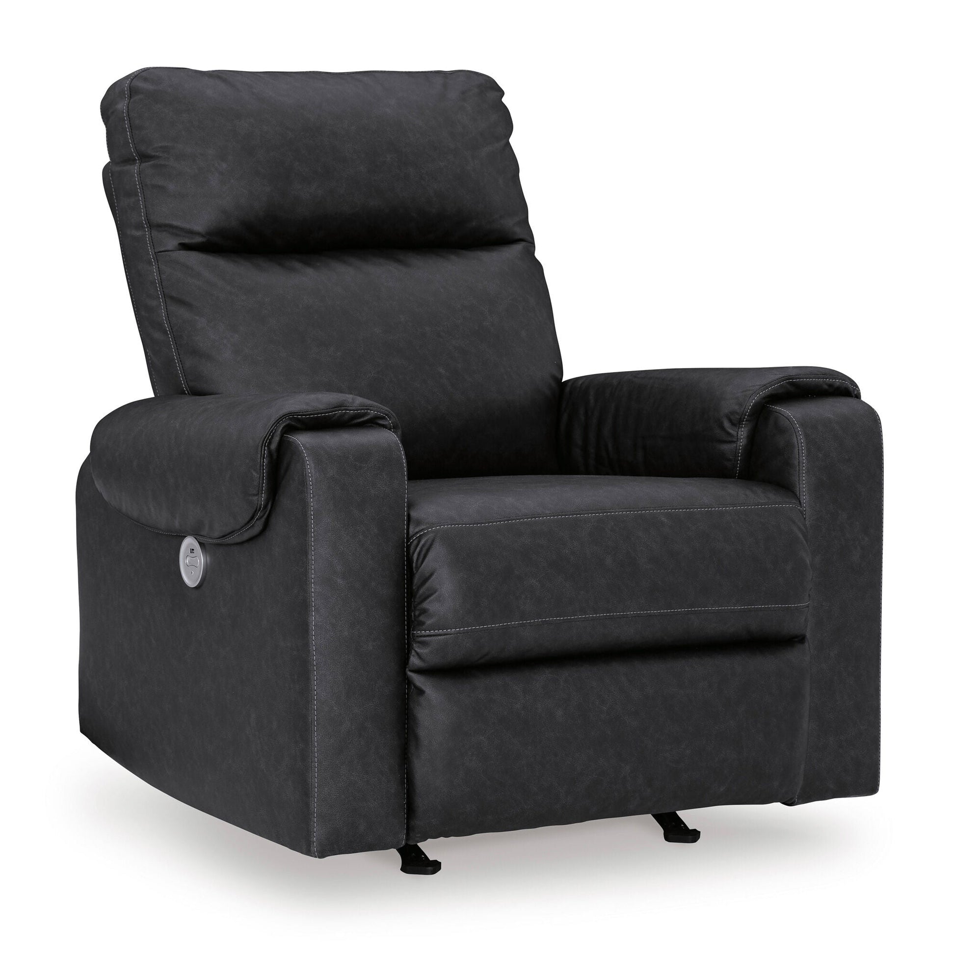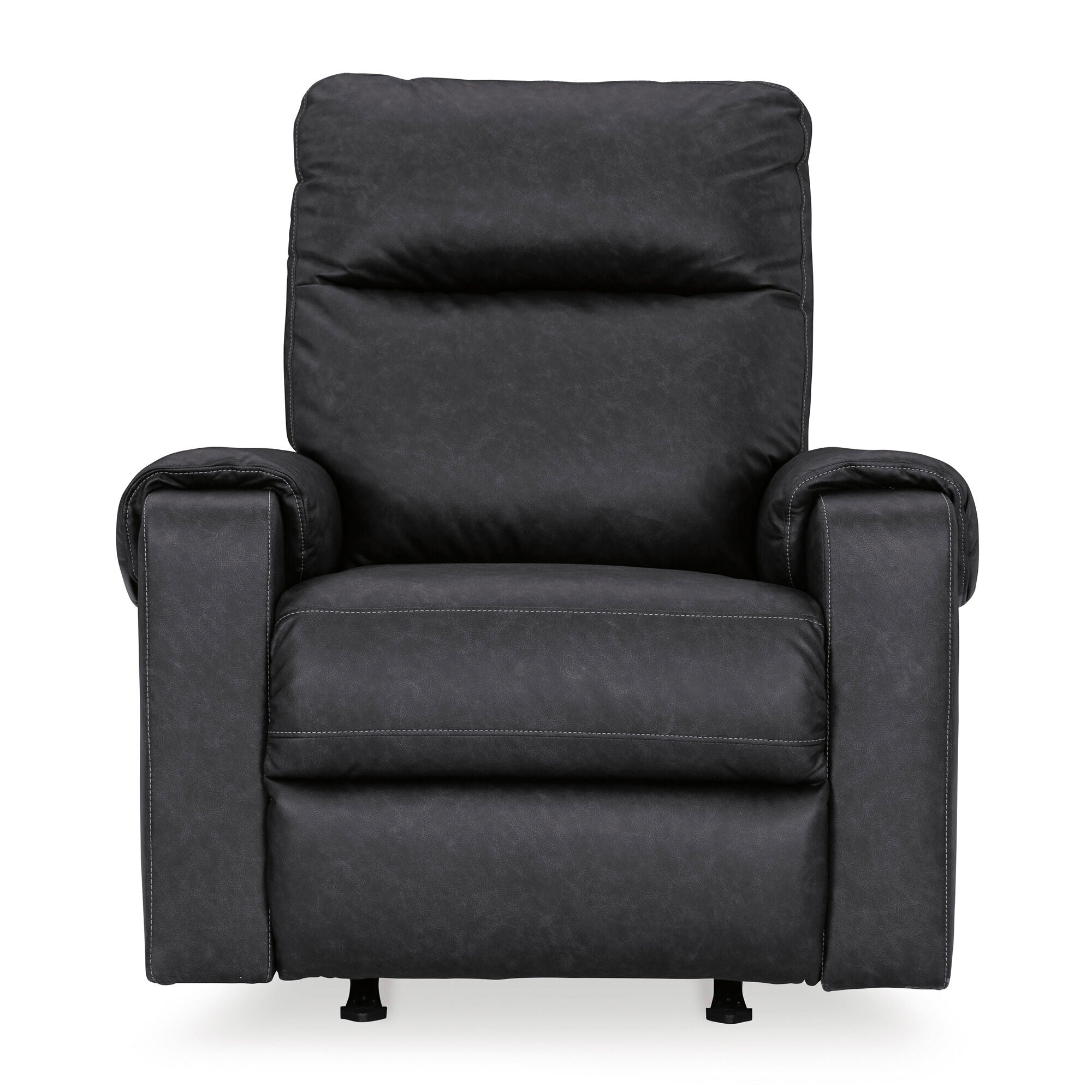 You don't just want to recline. You want to recline in high design. This power rocker recliner's clean lines, supple faux leather and soothing rocking motion are out to capture your heart with style and comfort. It gives you the upscale look you want for less—simply take a seat, raise your legs and relax. - Product Details provided by Manufacturer, Slumberland not responsible for errors in information.