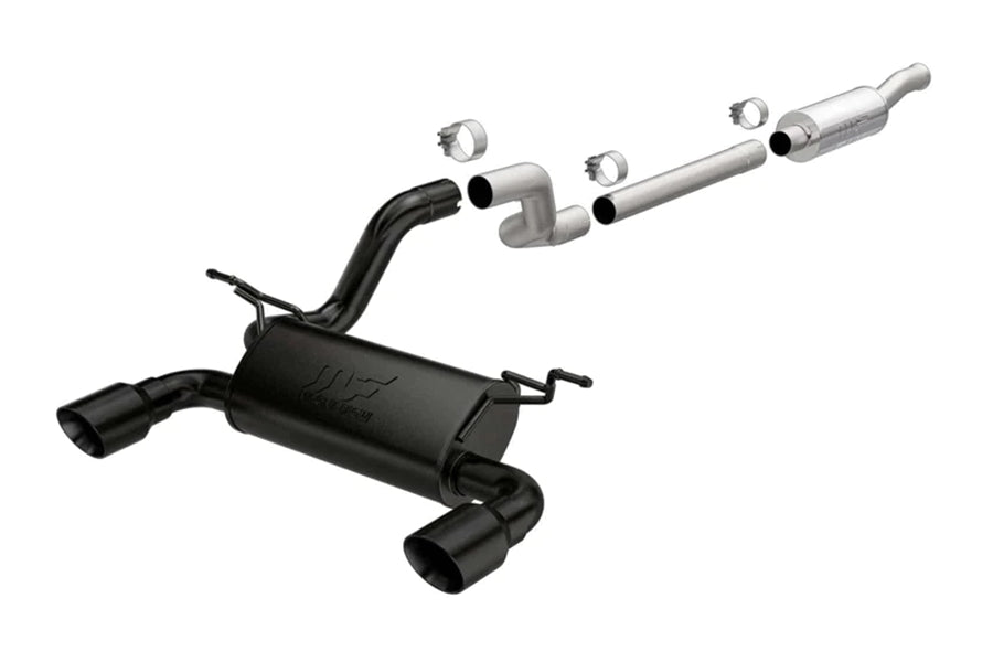 Extensive dyno testing is used to ensure that this axle-back exhaust system increases engine power and performance by improving the flow dynamics and evacuation of exhaust gases.