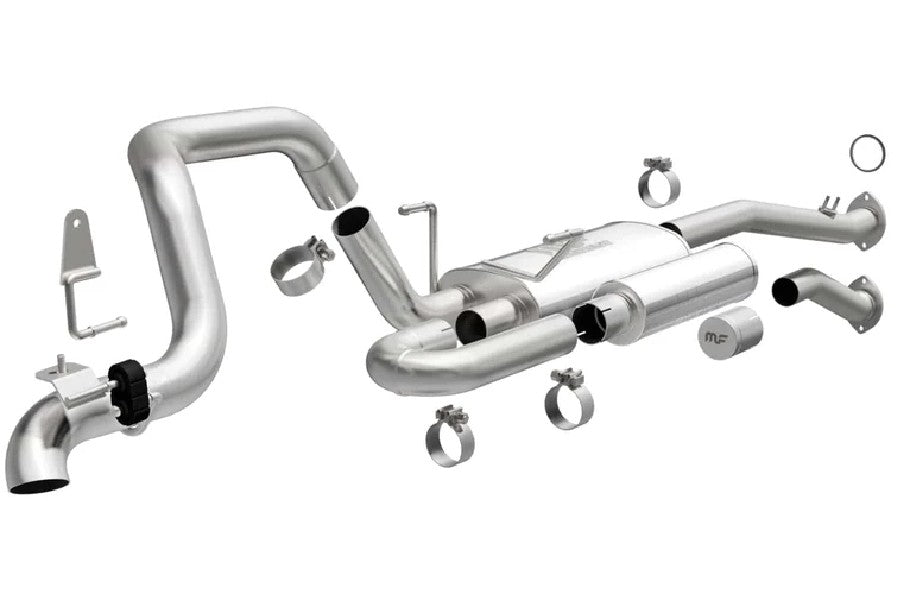 The MagnaFlow Toyota 4Runner Overland Series Cat-Back Performance Exhaust System empowers your overland rig with MagnaFlow’s deep signature exhaust note and dyno-proven performance. MagnaFlow has been weight optimized and designed to provide improved ground clearance thanks to its undercarriage-hugging, mandrel bent 2.5” main piping paired with a no-tip, high-clearance passenger side exit. These features improve ground clearance, departure angles and overall utility. MagnaFlow exhaust kit was developed to be compatible with the most common bolt-on aftermarket modifications. The single straight-through muffler is augmented by a quarter-wave NDT resonator, which utilizes MagnaFlow’s No Drone Technology to cancel out the undesirable frequencies of your Toyota 4Runner. This feature preserves the character of your motor’s exhaust while allowing for long distance highway cruising to overland destinations without dealing with tiresome interior droning noises. Exhaust system was produced using CNC precision robotic manufacturing, enabling precise fitment and easy, bolt-on installation. The entire exhaust kit features durable, 100% stainless steel construction and is covered by MagnaFlow’s limited lifetime construction warranty.