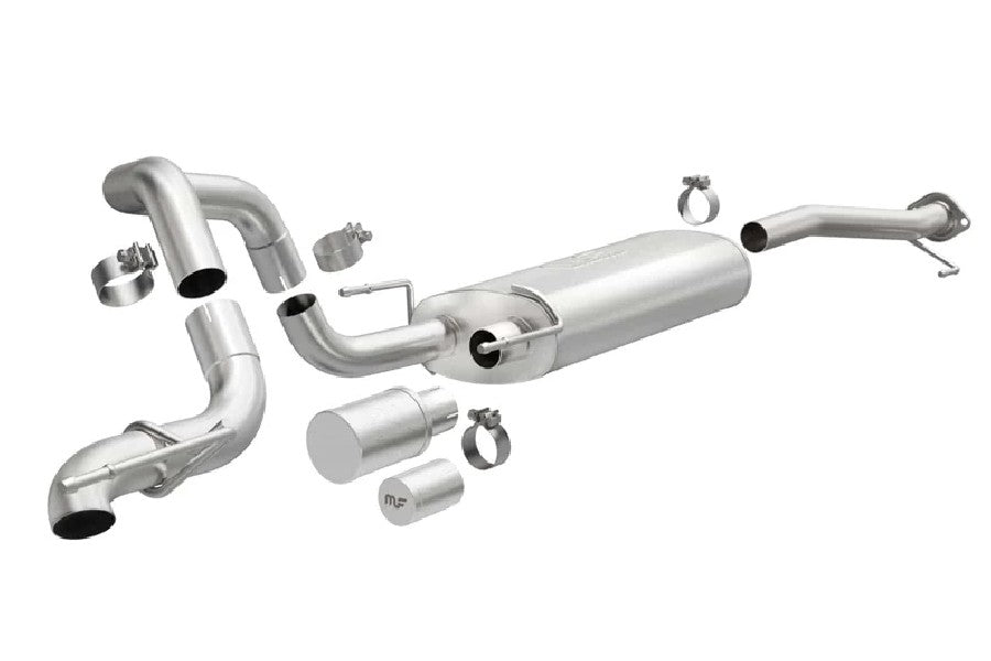 The MagnaFlow Toyota 4Runner Overland Series Cat-Back Performance Exhaust System will enhance your 4.0L V6 Toyota 4Runner with MagnaFlow’s renowned deep rumble and dyno-proven performance. MagnaFlow weight optimized for additional utility and designed such that its mandrel bent 2.5” diameter main piping is situated more closely to the body than the stock configuration. This combined with a single high-clearance no-tip, passenger-side rear exhaust exit allows for significantly improved ground clearance and departure angles. MagnaFlow exhaust system is compatible with the most popular bolt-on aftermarket modifications and features our No Drone Technology, which cancels out the natural droning frequencies of the V6 Toyota 4Runner at cruising speeds. This allows for a quiet ride on the highway while retaining the character of your rig’s exhaust note. CNC precision robotic manufacturing enables perfect fitment and hassle-free bolt-on installation. The 100% stainless steel construction of exhaust kit is covered by MagnaFlow’s limited lifetime construction warranty.