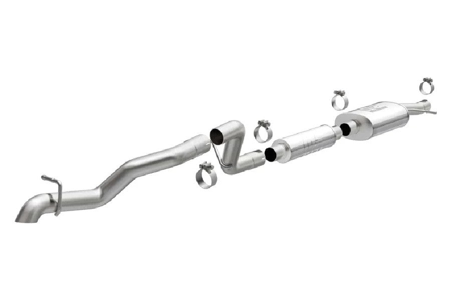 The MagnaFlow JK Jeep Wrangler Overland Series Cat-Back Performance Exhaust System will inject your Jeep Wrangler JK Unlimited (2012-2018) with MagnaFlow’s deep signature sound and dyno-proven performance. MagnaFlow exhaust kit weight is optimized for improved utility and features a single straight-through muffler with 2.5” mandrel bent main piping that fits closer to the undercarriage of the vehicle compared to the stock configuration. This combined with a no-tip, high clearance driver side rear exit greatly enhances your JK Jeep Wrangler’s ground clearance and departure angles. The exhaust system was designed to be compatible with the most popular bolt-on aftermarket modifications. Each system incorporates MagnaFlow’s No Drone Technology, which mitigates interior noise by cancelling out the natural droning frequencies produced by your JK Jeep Wrangler at cruising speeds while retaining the character of your engine’s exhaust note. CNC precision robotic manufacturing techniques enable perfect fitment and allow for hassle-free bolt-on installation. MagnaFlow is made entirely of durable stainless steel and backed by MagnaFlow’s limited lifetime construction warranty.