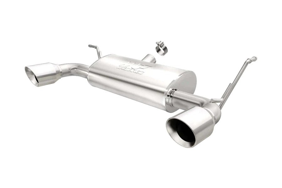 The MagnaFlow MagnaFlow Street Series Axle-Back Performance Exhaust System 15178 brings enhanced engine sound and dyno-proven performance to your 3.6L, 3.8L 2007-2018 Jeep with a healthy helping of our deep, resonant signature exhaust note at Moderate exterior and Mild interior sound levels. Thanks to its durable, corrosion resistant stainless steel design, this Jeep exhaust system will handle whatever tarmac you decide to leave your mark on. This performance exhaust kit features an axle-back layout designed to replace your Jeep's exhaust system from near the rear axle on back. With its fast-flowing, mandrel bent 2.5in. main piping and 1 Straight-Through mufflers ending in a Dual Split Rear exit with 4in. Polished Welded-On Double Wall Angle Cut Folded Edge tips, your ride will be sounding as awesome as it looks. Extensive 3D scanning during development has resulted in a direct-fit design that you can easily install yourself. 15178 is produced using CNC precision robotic manufacturing techniques and is backed by MagnaFlow's 1-year limited finish warranty and limited lifetime construction warranty.