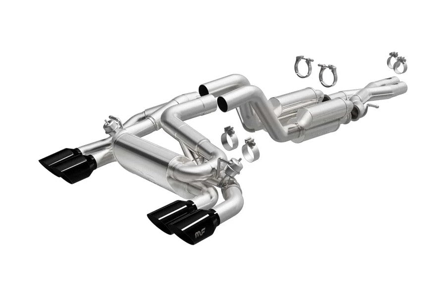 The MagnaFlow Jeep Wrangler 392 Street Series Cat-Back Performance Exhaust System #19598 brings the latest evolution in exhaust sound and dyno-proven performance to your already capable 2021+ Jeep Wrangler 392. The 3” main tubing of exhaust kit #19598 flows through dual free flowing straight through mufflers and NDT (No Drone Technology) resonators before terminating in a quad rear exit with 4” black chrome tips. #19598 is tuned to produce a powerful, resonant performance exhaust tone while maintaining moderate interior sound levels. The integrated NDT technology keeps unwanted droning noises in check at lower engine speeds such as when cruising on the highway. This Jeep Wrangler 392 exhaust system is made of durable, corrosion resistant stainless steel and is produced using advanced CNC precision robotic manufacturing techniques that enable #19598 to feature a direct-fit design that you can install yourself. MagnaFlow stands by this performance exhaust kit with our 1-year finish warranty and limited lifetime construction warranty.