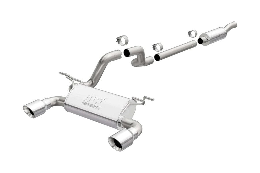 The MagnaFlow Jeep Wrangler Street Series 19438 brings out the personality of your 2.0L 2018-2023 Jeep Wrangler with our signature resonant, powerful engine tone and dyno-proven performance. Thanks to its fast-flowing, mandrel bent 2.5in. main piping and 2 Straight-Through mufflers ending in a Dual Split Rear exit with 4in. Polished Welded-Double Wall-Angle Cut-Folded Edge tips, this Jeep Wrangler exhaust kit has the performance chops to match its sporty sound and appearance. Upgrade your ride to the next level with an exhaust that has the pipes to put other Jeep Wrangler’s to shame. With this system your vehicle will be producing Moderate exterior and Mild interior sound levels while leaving other cars and trucks feeling envious at every stoplight. Exhaust kit 19438 features a cat-back layout that replaces your ride’s stock exhaust components from near the catalytic converter on back. Extensive 3D scanning during development has resulted in a direct-fit design that you can easily install yourself. 19438 is produced using CNC precision robotic manufacturing techniques and is backed by MagnaFlow’s 1-year limited finish warranty and limited lifetime construction warranty.