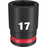 The MILWAUKEE® SHOCKWAVE Impact Duty™ 3/8" Drive 17MM Standard 6 Point Socket features the boldest, longest-lasting markings and extreme impact durability in high torque applications. The stamped and ink-filled size marking enables an accurate socket selection every time throughout the life of the socket. Engineered with high-strength forged steel for optimized performance in heavy-duty applications, and a non-slip hex geometry prevents fastener rounding. The dual-hole design and ring groove allow for easy socket attachment and removal. All SHOCKWAVE Impact Duty™ Sockets are backed by a Lifetime Guarantee and meet ASME industry standards.