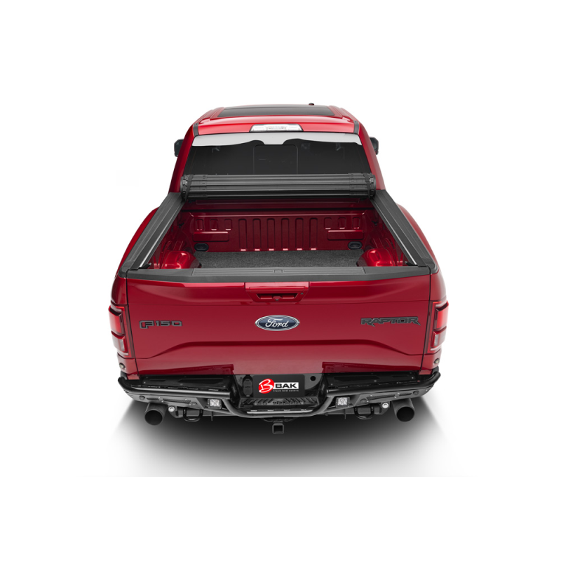 The new BAK Revolver X4s is the third generation of America's #1 selling premium hard rolling cover, now with exciting new features. The Revolver X4s is a bed cover engineered for real-world durability. With NEW matte black heavy-duty aluminum slats wrapped in industrial-grade vinyl and a matte black finish, top-to-bottom, the X4s delivers a modern, stylish appearance. With the cover closed, the patented rotational locking system secures the X4s for the entire length of the bed, on both sides, providing unrivaled strength and security. When open, the X4s cover rolls forward smoothly, storing securely with a durable strap and buckle system. This design gives you full access to your truck bed and does not interfere with your rear view mirror sightlines or block the third brake light. With revised premium black aluminum slats, newly designed side seals, and finished rear corner caps, the Revolver X4s bed cover achieves a new level of refinement for your truck. Best of all, it's backed by an impressive 5-year warranty. Expect More.