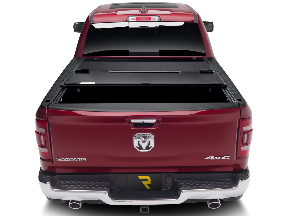 - RealTruck UnderCover Armor Flex Hard Folding Tonneau Cover: Sturdy aluminum panels with a scratch-resistant matte black finish, designed for strength and style.