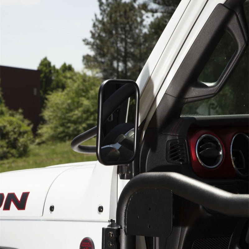 Leaving your Jeep doors at home and enjoying the delight of open-air driving is an experience like no other. But leaving your doors behind leaves you without side-view mirrors and can put you in violation of the law in most states. Rugged Ridge Trail Mirrors provide a simple bolt-on mirror solution that is not only highly-functional, but looks great AND keeps you legal. Engineered specifically for Wrangler JL and Gladiator JT models, these Trail Mirrors feature a long adjustable mirror arm for greater visibility and a handy patent pending jamb nut design for speedy installation and removal. Each mirror assembly is finished with a durable and attractive Tough Satin Black Powder Coat finish and includes all the necessary hardware for installation. Choose from a traditional rectangular mirror head or a round mirror for a more retro appearance. Rugged Ridge Trail Mirrors fit the left OR the right side of the vehicle and are available in singles and pairs.