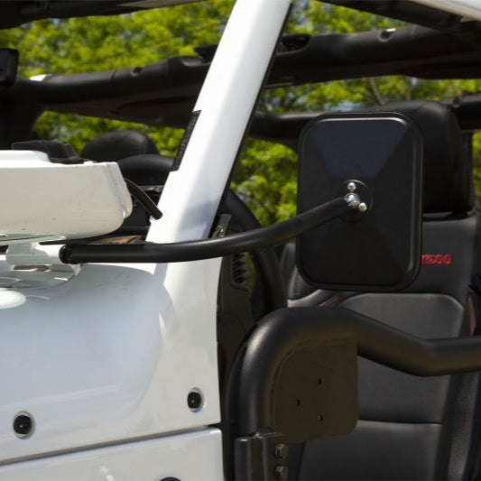 Leaving your Jeep doors at home and enjoying the delight of open-air driving is an experience like no other. But that can leave you without side-view mirrors and put you in violation of the law in most states. Rugged Ridge Trail Mirrors provide a simple bolt-on mirror solution that is not only highly-functional, but looks great AND keeps you legal. Engineered specifically for Wrangler JL and Gladiator JT models, these Trail Mirrors feature a long adjustable mirror arm for greater visibility and a handy patent pending jamb nut design for speedy installation and removal. Each mirror assembly is finished with a durable and attractive Tough Satin Black Powder Coat finish and includes all the necessary hardware for installation. Choose from a traditional rectangular mirror head or a round mirror for a more retro appearance. Rugged Ridge Trail Mirrors fit the left OR the right side of the vehicle and are available in singles and pairs.