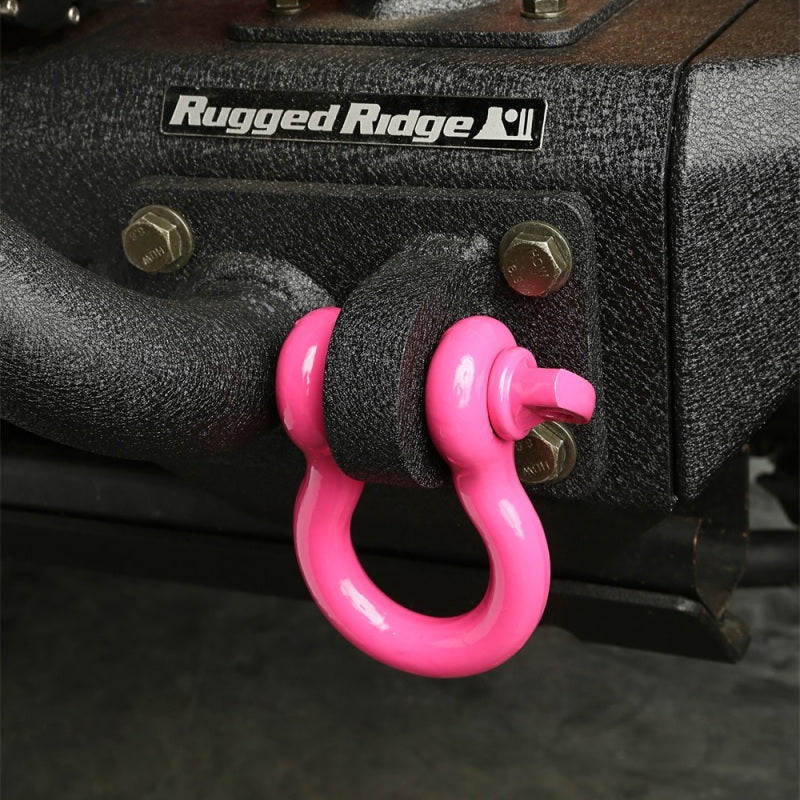 This 3/4- in. D-Ring Shackle from Rugged Ridge is rated to 9,500 lbs. with a screw-pin design making them essential for effective vehicle recovery. Constructed of high-strength forged steel and Pink powder-coated, these d-ring shackles are built to deliver in off-road conditions while looking good doing it. No recovery gear kit is complete without a set of D-rings, suitable for temporary connections of straps, snatch blocks and pulleys for safe and efficient vehicle recovery. Keep an extra set on hand so you are equipped for anything. Sold individually.