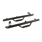 Rugged Ridge Spartan Nerf Bars are the ideal solution for TJ owners looking for a little help climbing into their lifted Jeep without sacrificing that aggressive off-road attitude. Spartan Nerf Bars feature a 3- in. OD primary tube that fits in a higher position than conventional tube steps offering a cleaner look, while patented drop-down step hoops at each door gives you firm footing for easy entry & exit. Constructed from .084 wall steel tubing and finished with a durable 3-stage textured black powder coat, Rugged Ridge Spartan Nerf Bars are designed with the strength and enduring good looks that your Jeep demands. Includes all necessary installation hardware and installation instructions. Does NOT fit Wrangler Unlimited LJ models.