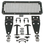 This black nine piece hood kit from Rugged Ridge was powder coated in a semi- gloss finish to protect your investment against the elements for a long lasting sleek look. This kit offers a bolt on , no drill installation for a direct fit and comes with complete hardware for a trouble free installation.