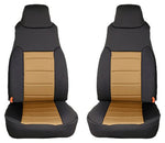 Custom Fit Neoprene Seat Covers. These covers are constructed of durable neoprene creating the best looking custom seat cover available. Rugged Ridge does not use that cheap stretch nylon on their seat covers! Neoprene (wet suit material) is a great fabric to protect your seats from dirt, water and whatever mother nature can throw at you. No more burned legs from hot vinyl seats! Each cover is custom tailored for your Jeep's original equipment seat style making your seats look like they have been recently reupholstered. Installation is easy with special designed elastic cords, nylon straps and hooks that attach to your seat and to the seat cover mounting points. The center portion (color) goes all the way to the top of the seat.