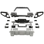 We could tell you what's behind the name, but we would prefer to define it. Venator represents a sharp departure from typical bumper design- a dominant form, carefully crafted in clay and then forged in steel. Muscular contours and chiseled facets combine with the Venator's radical arches, creating a bumper that clearly complements the overall aesthetics of the JL / JT, rather than fighting them. The Venator's modern design features a winch tray, built-in and capable of supporting a 12,500 lb. winch, keeping you equipped for the unexpected. To top off this ultimate bumper package, we've created a stylized Overrider with all the visual impact the Venator deserves. With a square sculpted frame and scalloped cross bar that accents the Jeep's iconic slatted grille, the Venator Front Bumper impresses with a true inspiration of design.