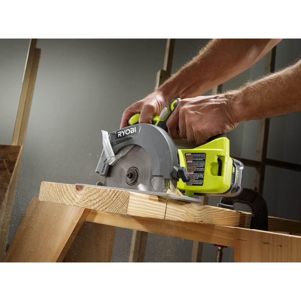 RYOBI introduces the 18-Volt ONE+ 6-1/2 in. Circular Saw, an upgraded tool that provides corded performance in a cordless tool. The 18-Volt ONE+ 6-1/2 in. Circular Saw has a 40% more powerful motor compared to its previous model (P506). The 24 Tooth Ultra-Thin kerf carbide-tipped blade allows for fast, clean cuts. Best of all, it is part of the RYOBI ONE+ System of over 175 Cordless Tools that all work on the same battery platform. Backed by the RYOBI 3-Year Manufacturer's Warranty, the 18-Volt ONE+ Circular Saw includes a 6-1/2 in. 24 Tooth Ultra-Thin kerf carbide-tipped blade, blade wrench, and operator's manual. Battery and charger sold separately.