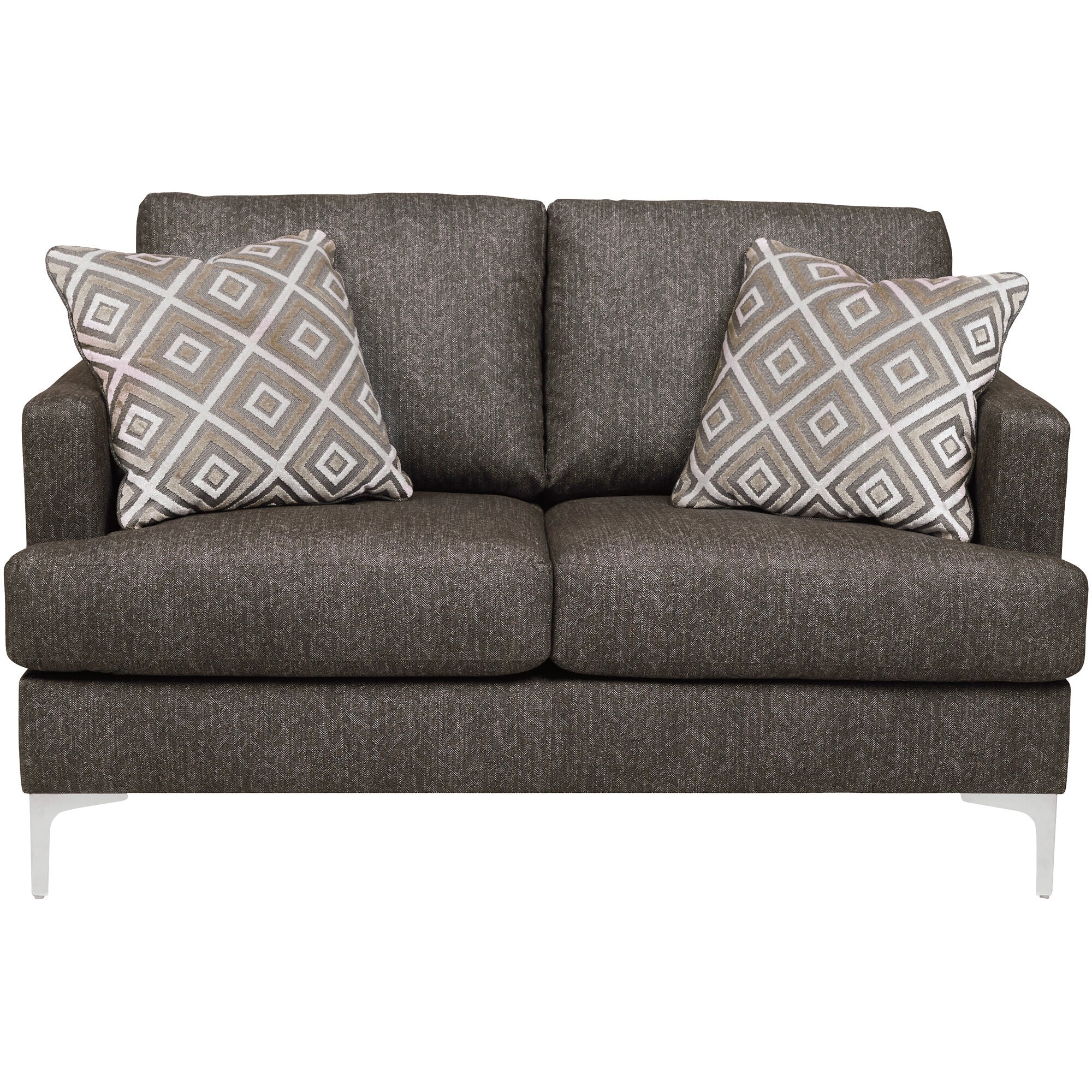 If modern subtlety is your style, settle into the heavenly texture of this loveseat. The tremendously soft upholstery has a slight herringbone pattern that adds depth and richness to the java color. The metal accent legs elevate this piece as well as the style of it and add a decidedly chic sense to your space. - Product Details provided by Manufacturer, Slumberland not responsible for errors in information.