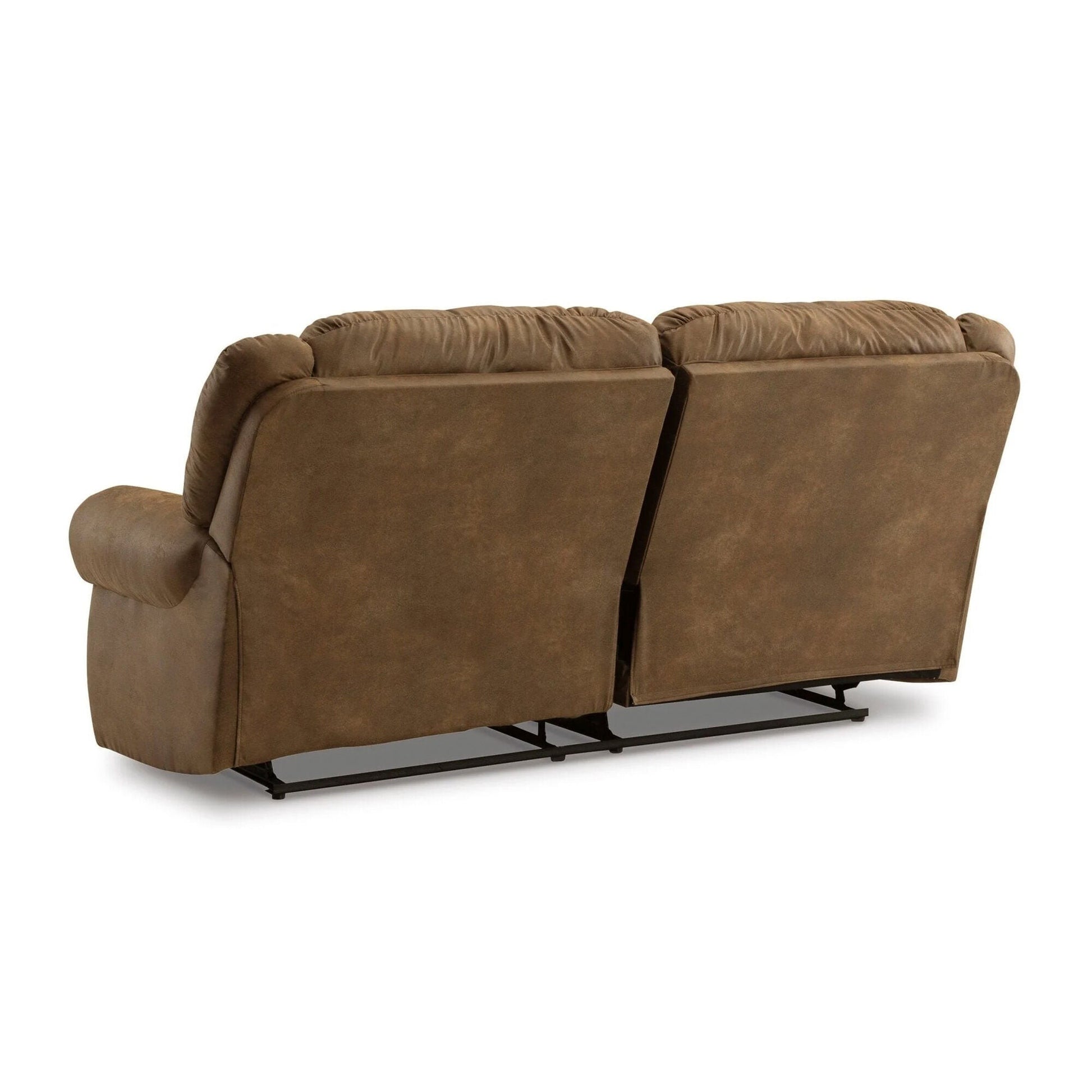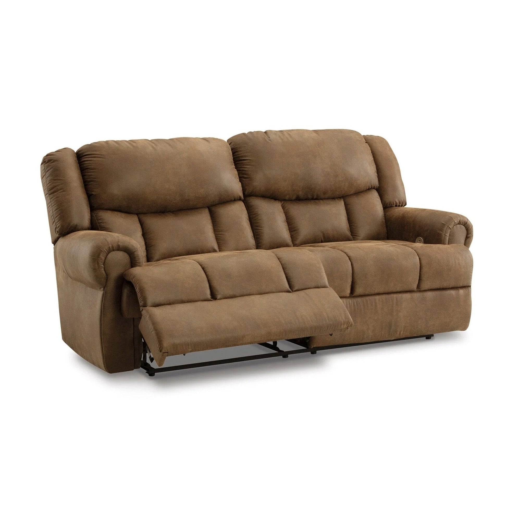 Expansive elegance. This power reclining sofa makes a sizable style statement. Its large scale enhances the luxe appearance, magnifying the beauty of richly warm brown faux leather. Polishing off the piece is one-touch power reclining, which adds a layer of function to this masterclass in form.
