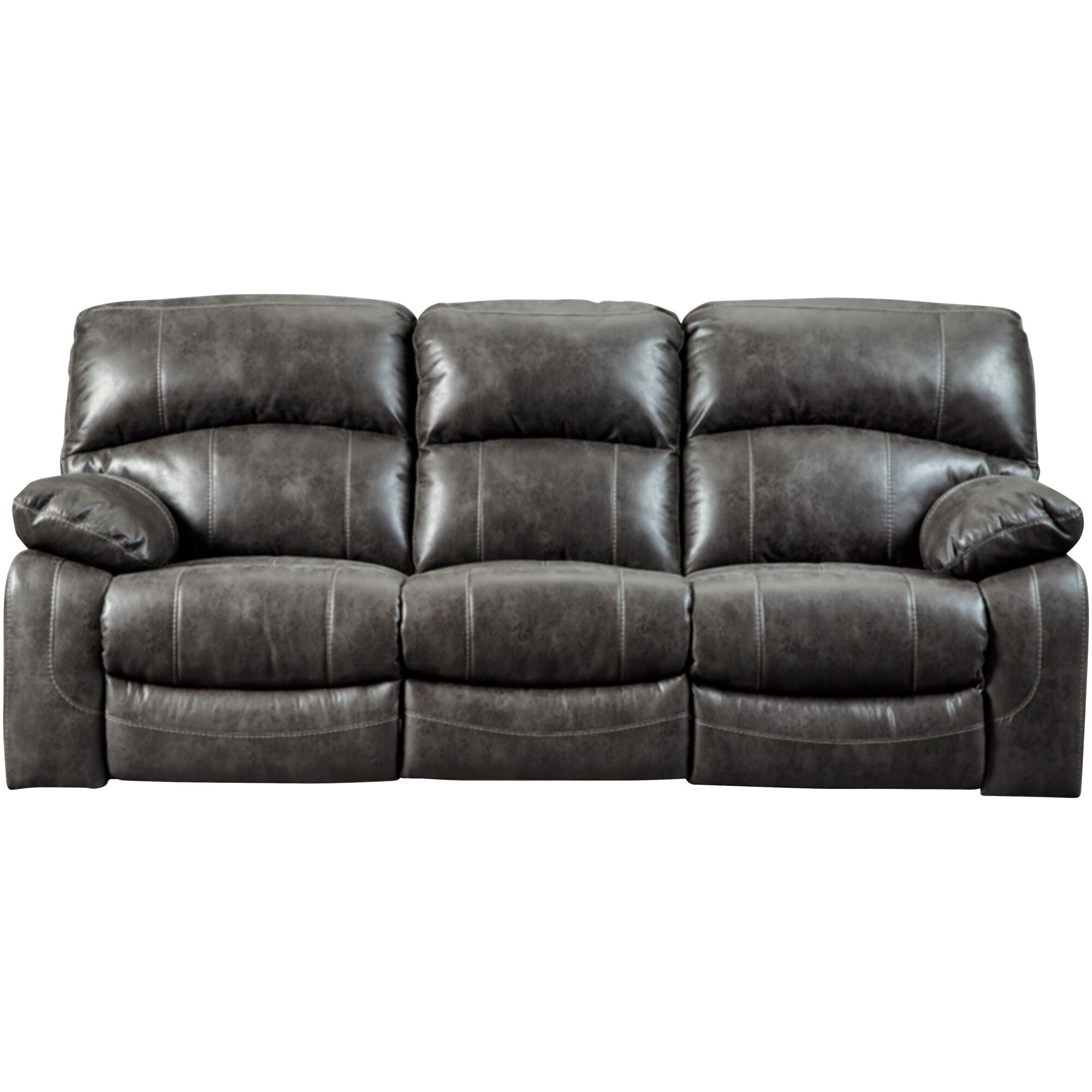 There is power in beauty with this power reclining sofa. Handsome crackle effect in the upholstery gives the appearance of supple leather but this sofa is all about the warmth of fabric. Contrast jumbo stitching adds a stylish touch. Double stuffed armrests cuff your body in comfort. Adjust your head and recline back with one easy touch. Complete the look with the Dunwell Power Reclining Loveseat.