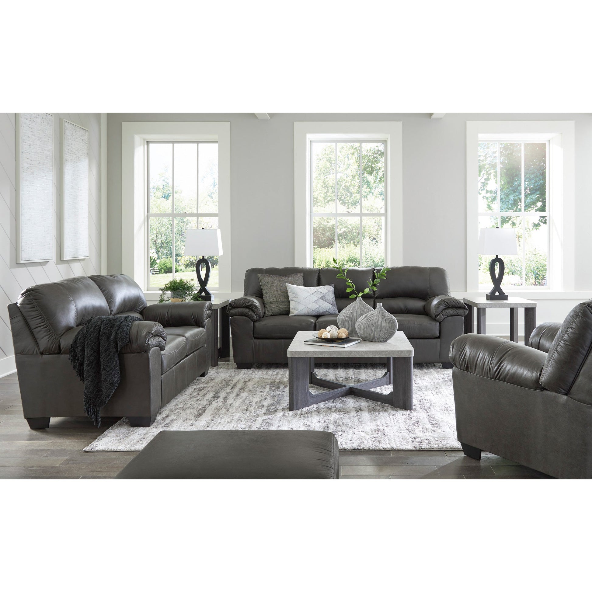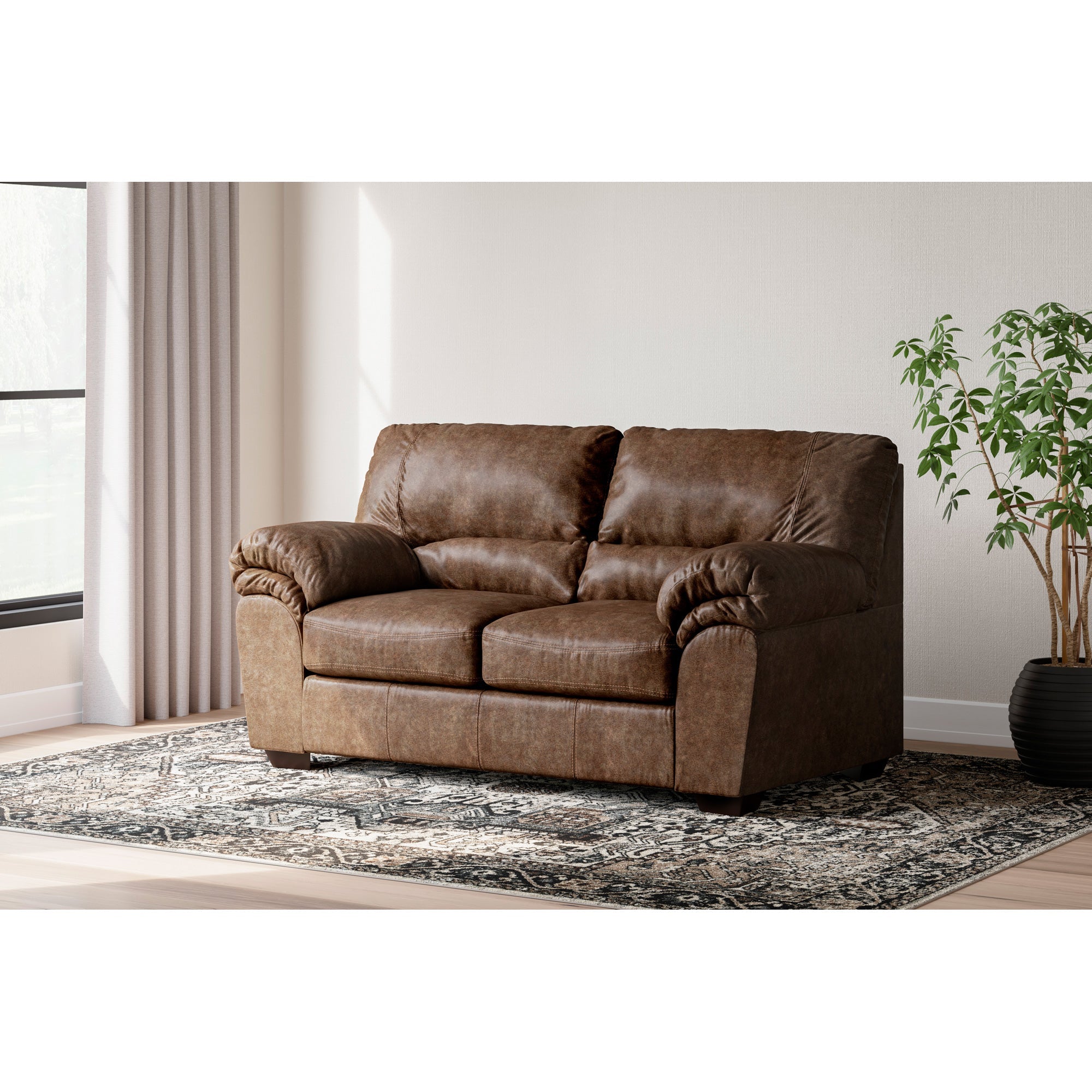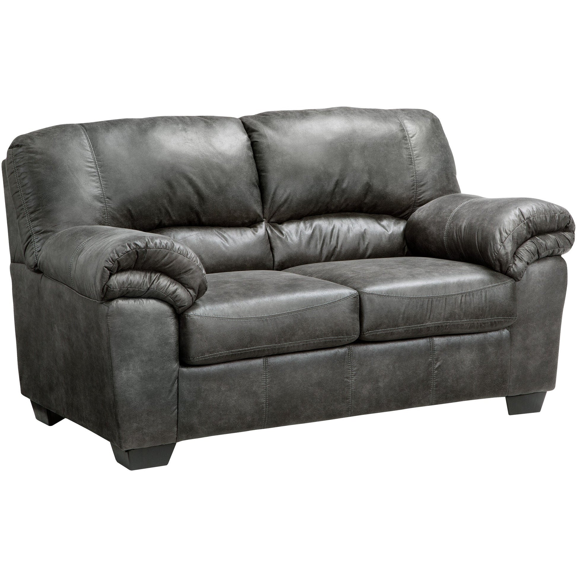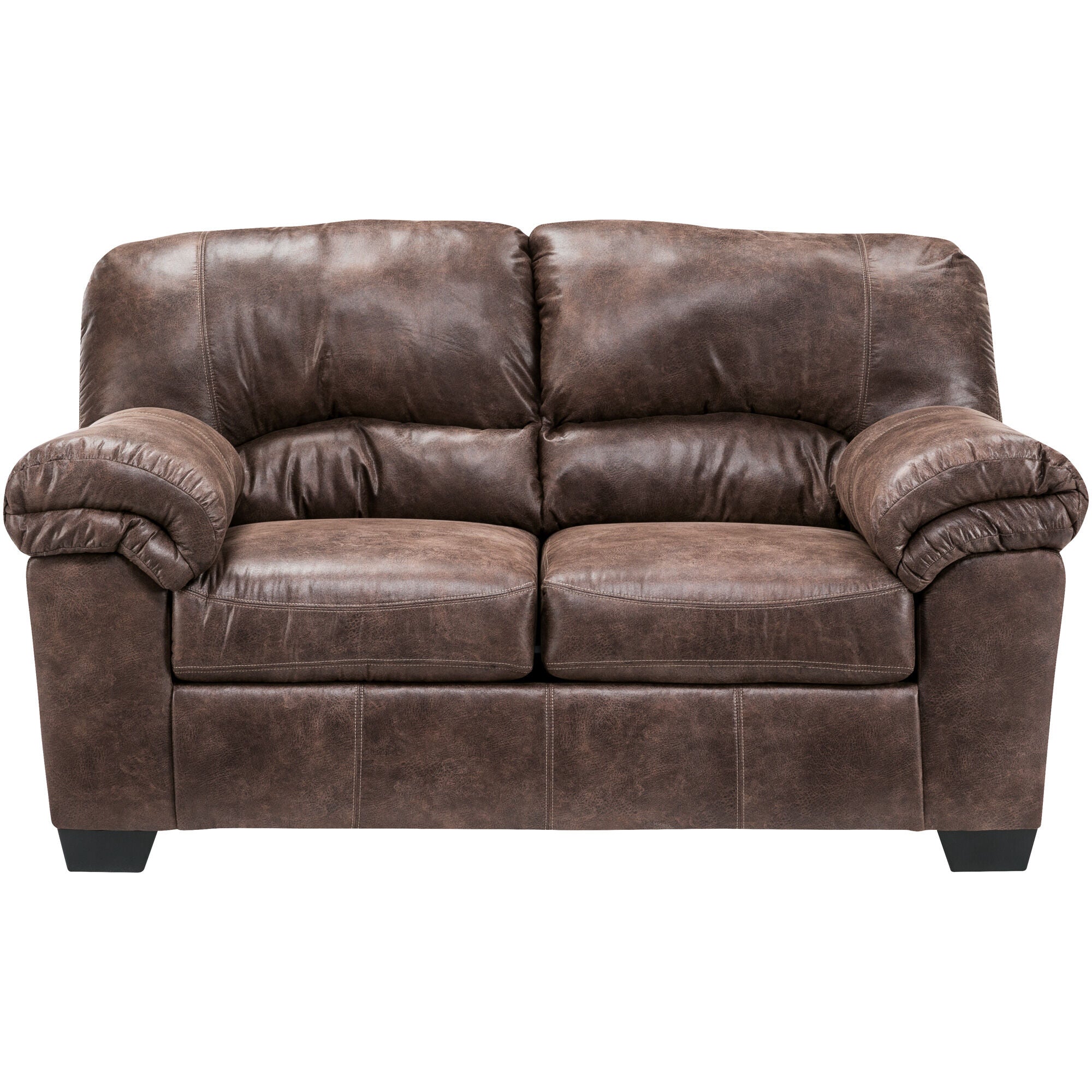 Experience the look and feel of leather without the high price tag. The Redmond loveseat has a beautifully distressed leather look and an ultra-soft feel. The back and arms are padded with thick, high-resiliency foam cushioning for supreme comfort and support, and the frame is corner-blocked for stability and durability. This handsome loveseat is a perfect choice for the family room or casual living room. The upholstery is easy-care polyester with a touch of polyurethane.