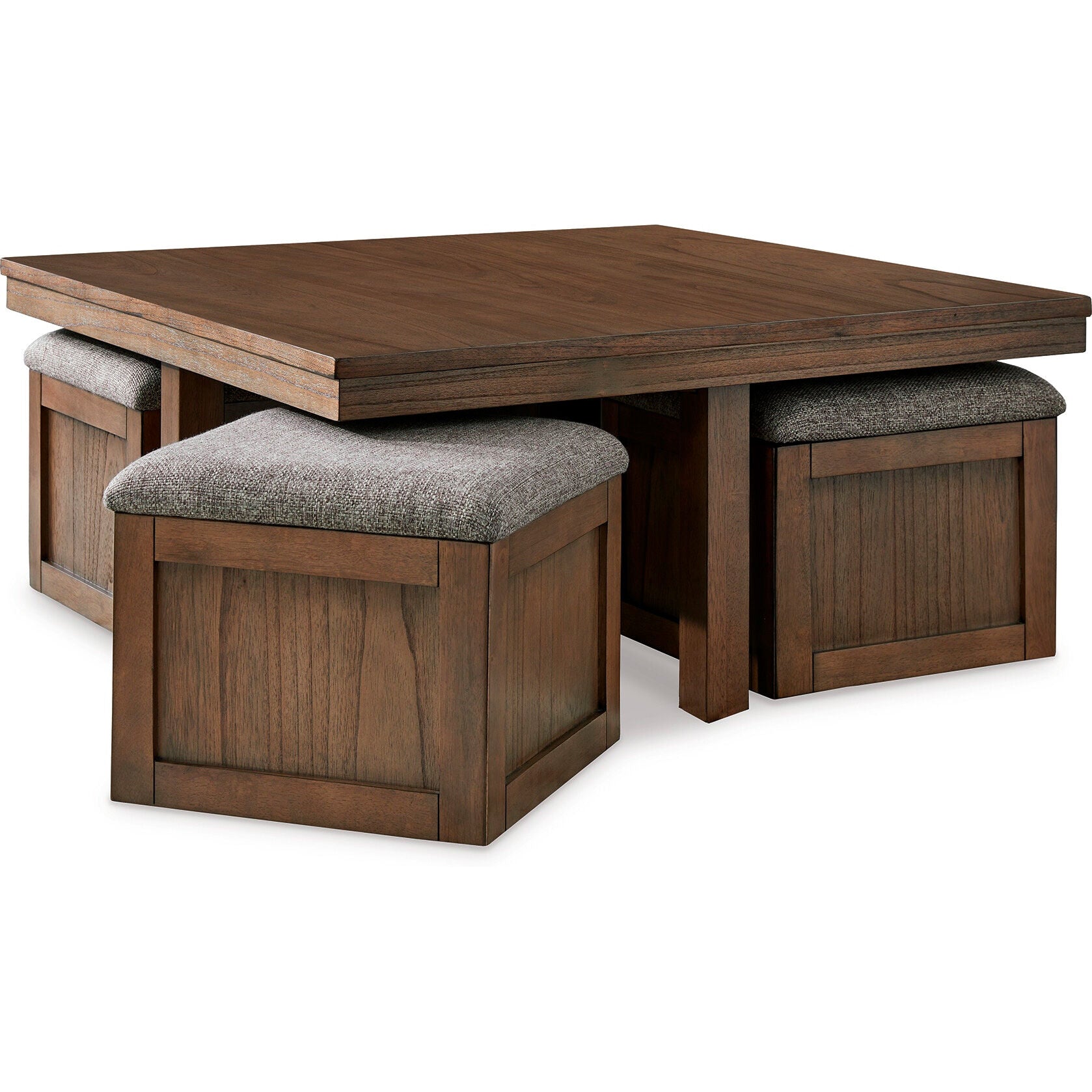 Elevate your entertainment experience with the Boardernest Nesting Stool Coffee Table. A functional companion for your seating area, it's defined by a richly versatile finish that works well with any color palette. Storage and extra seating are a bonus with this practical coffee table. Instantly upgrade game days and movie nights—the four stools wheel out easily with casters, tucking away neatly under the table when you're done. And with storage under the top of each stool, you can keep essentials on hand and out of sight. The Boardernest Nesting Stool Coffee Table brings practicality and style to your living room.