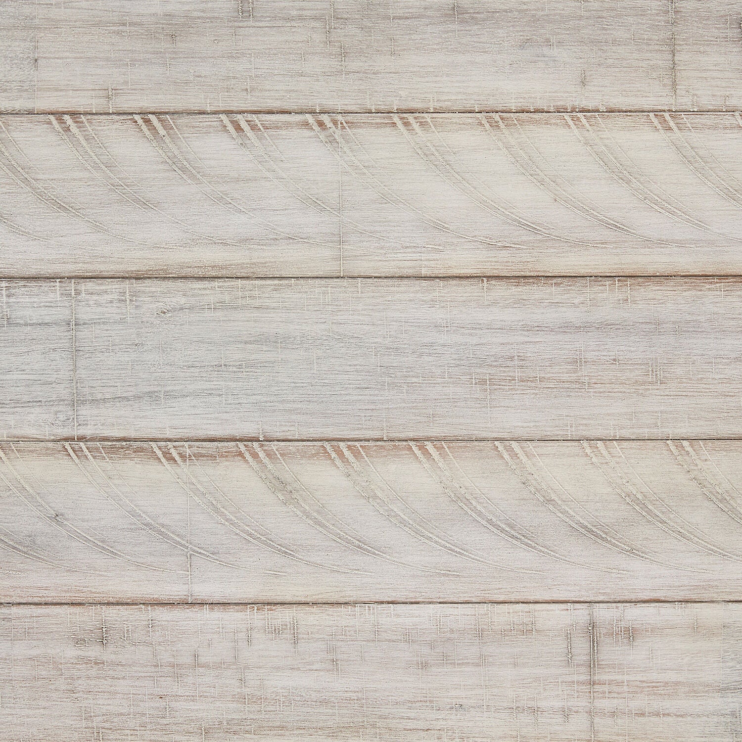 A rustic rendition of modern farmhouse style, this coffee table set is right in tune with your richly relaxed sense of style. The clean, yet hearty profile is enhanced with a distressed whitewash finish and offset plank-effect tabletop. Decorative tension bar and nailhead accents add an industrial twist.