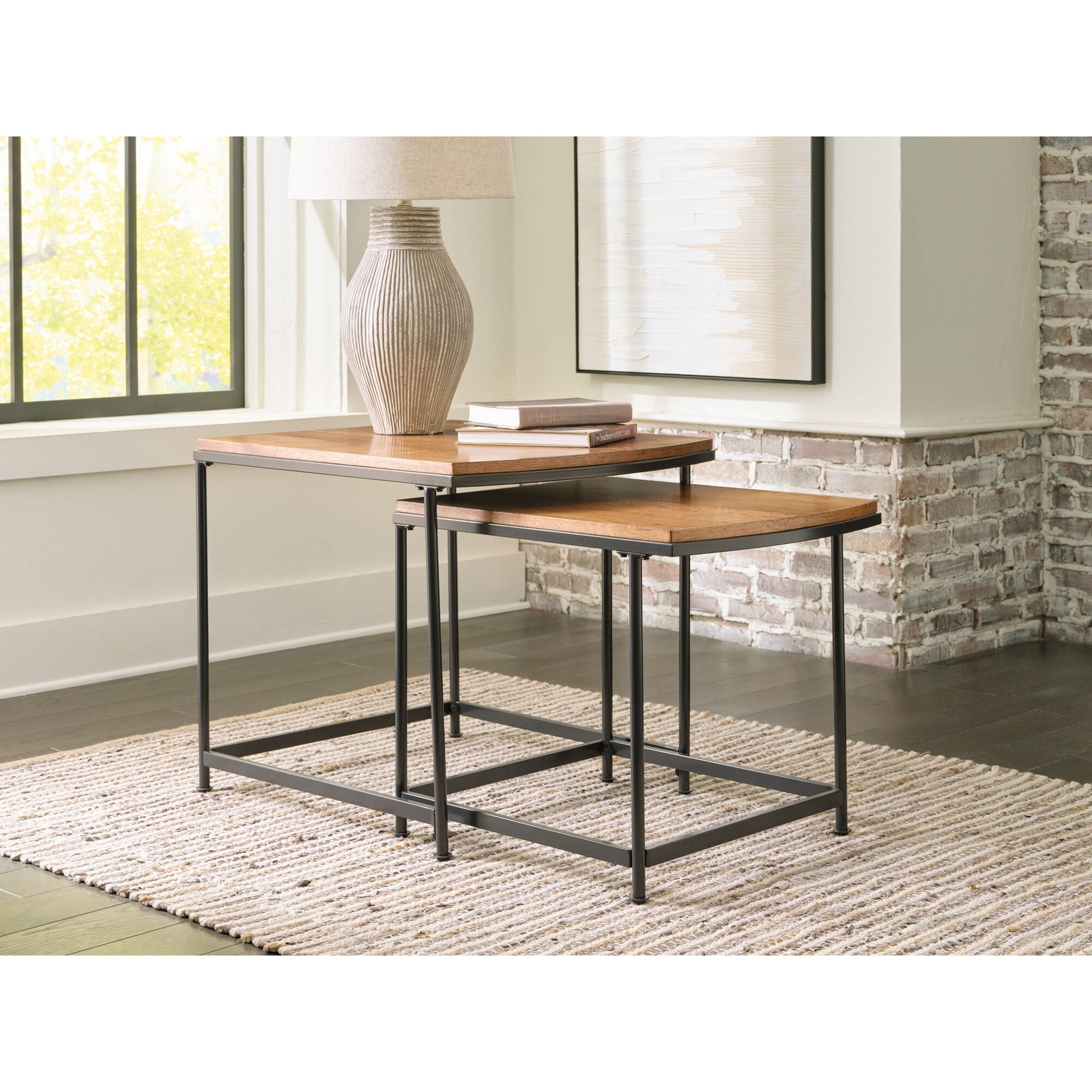 From the design geniuses at Ashley Furniture, the Drezmoore Nesting End Table is an attractive solution for the problem of having enough surfaces in small spaces. Designed as a sofa end-table — actually a pair or end tables — the smaller table can be stored underneath the taller table when you need extra space or can be pulled out to work as an independent table to expand your surface area. With a light mango wood veneer and metal framing, this two-part table will fit many different decorative styles. Buy one for each end of your sofa or to use as nightstands.