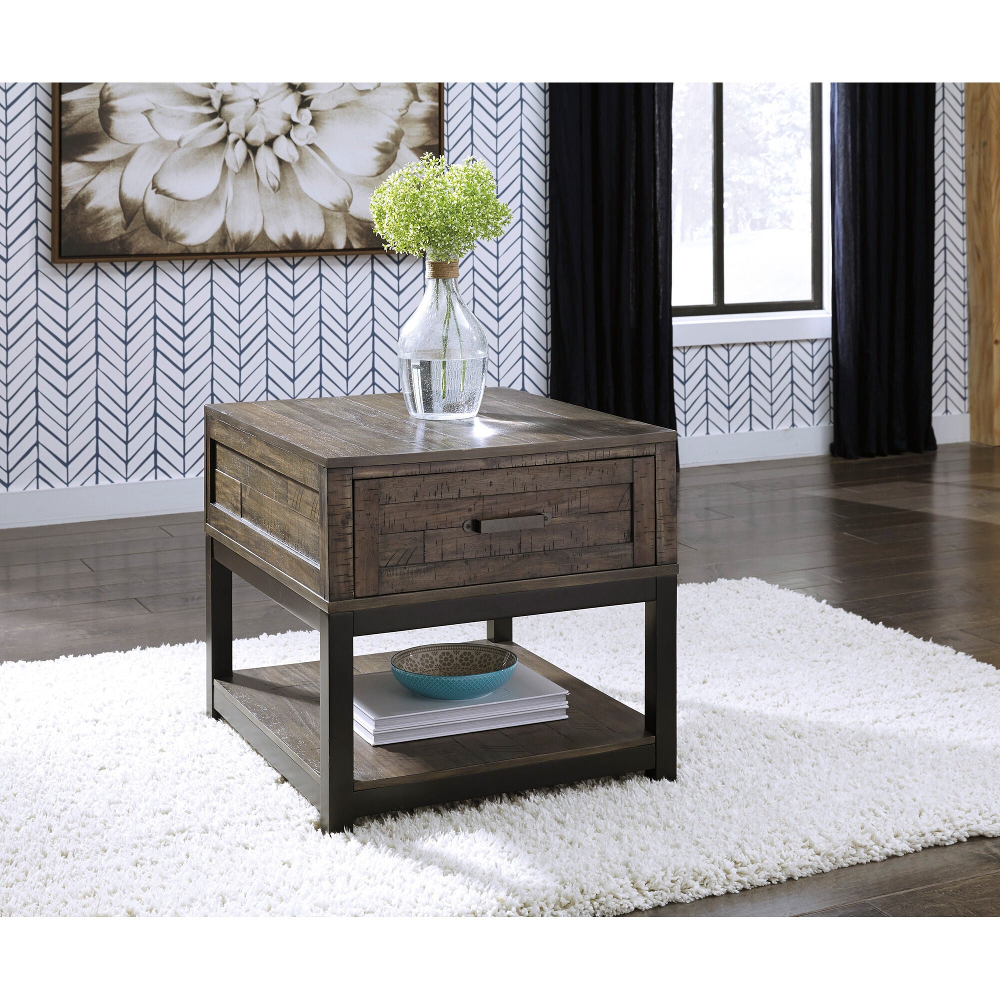 Combining a two-tone finish with a gently distressed texture produces one very distinctive end table. Whether your style is modern farmhouse or urban industrial, this end table is the perfect accent for your rustic retreat. - Product Details provided by Manufacturer, Slumberland not responsible for errors in information.
