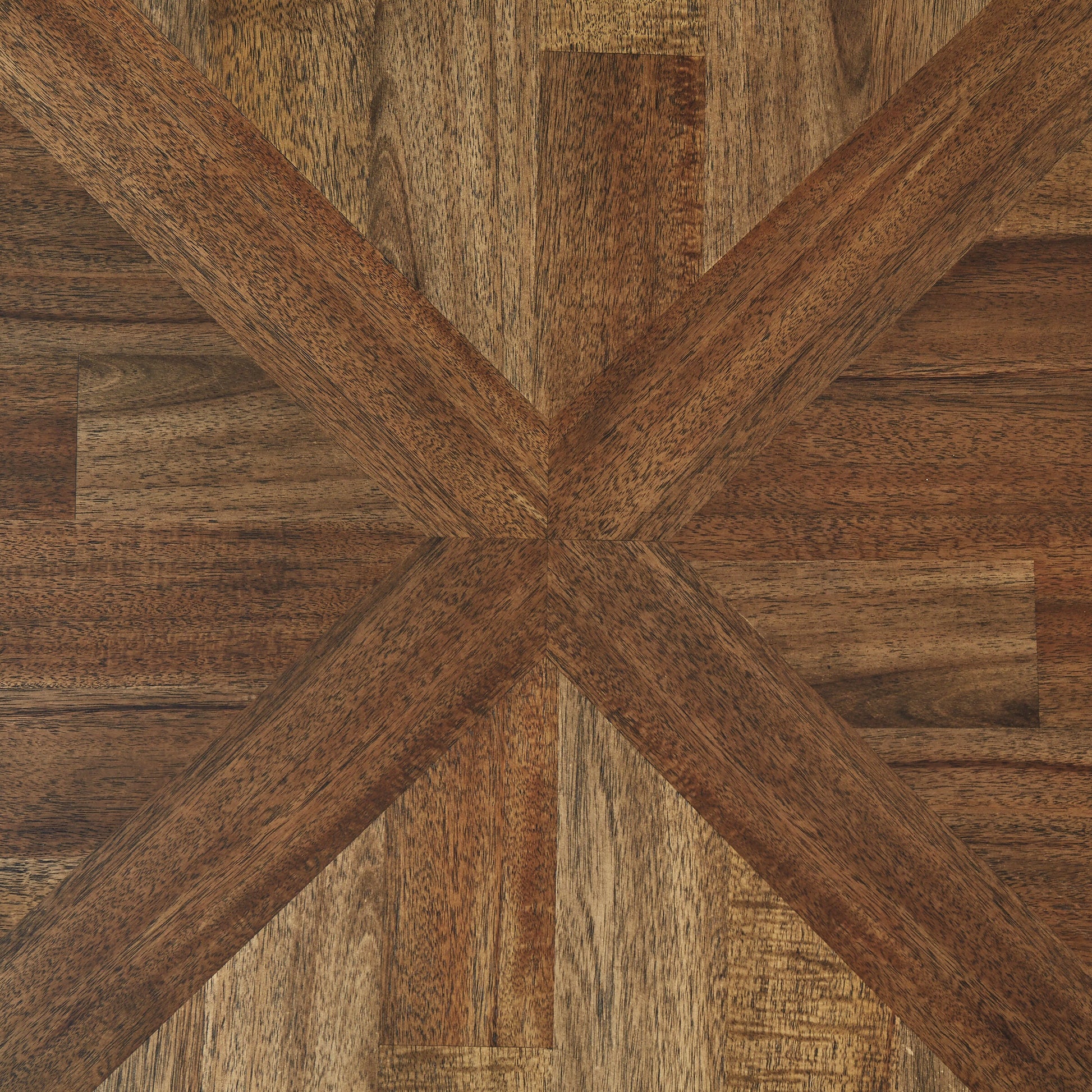 This pack of three Roybeck tables will redefine your living space in an instant. The inlaid-look tabletop gives these tables style to spare. Perfect for contemporary, transitional or industrial décor, the butterfly–patterned veneer tabletops have a multi-colored natural finish for rustic flair. This set includes a round coffee/cocktail table and two round end tables, all with lower shelves. Made of wood, acacia veneers, and engineered wood.