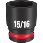 The MILWAUKEE® SHOCKWAVE Impact Duty™ 1/2" Drive 15/16" Standard 6 Point Socket features the boldest, longest-lasting markings and extreme impact durability in high torque applications. The stamped and ink-filled size marking enables an accurate socket selection every time throughout the life of the socket. Engineered with high-strength forged steel for optimized performance in heavy-duty applications, and a non-slip hex geometry prevents fastener rounding. The dual-hole design and ring groove allow for easy socket attachment and removal. All SHOCKWAVE Impact Duty™ Sockets are backed by a Lifetime Guarantee and meet ASME industry standards.